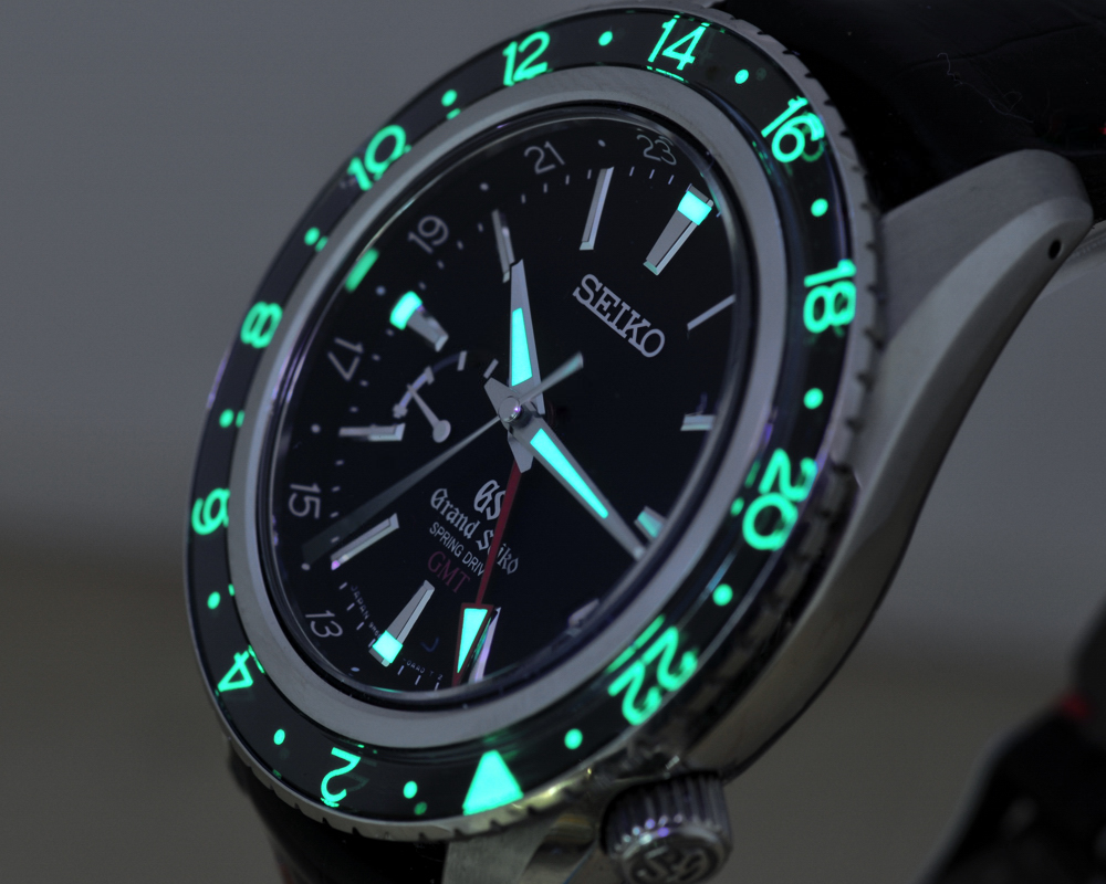Продаю в Москве новыми Grand Seiko GMT Spring Drive SBGE001. Cталь. Черный циферблат, Сапфир с двойным антибликом, Необычный по конструкции безель со светящимися метками, сам он покрыт сапфировым стеклом.Завинчиваемая головка, Водозащита 200м, Диаметр 43,5мм, GMT функционал.
