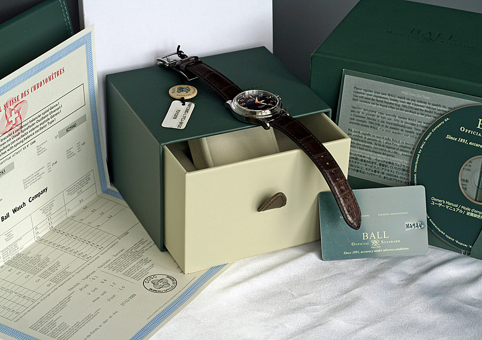 Фантастически красивая модель Ball в редчайшем исполнении. Лимитированный выпуск - всего 200 экземпляров для внутреннего Японского рынка ( угольно чёрный циферблат с метками и стрелками из розового золота).