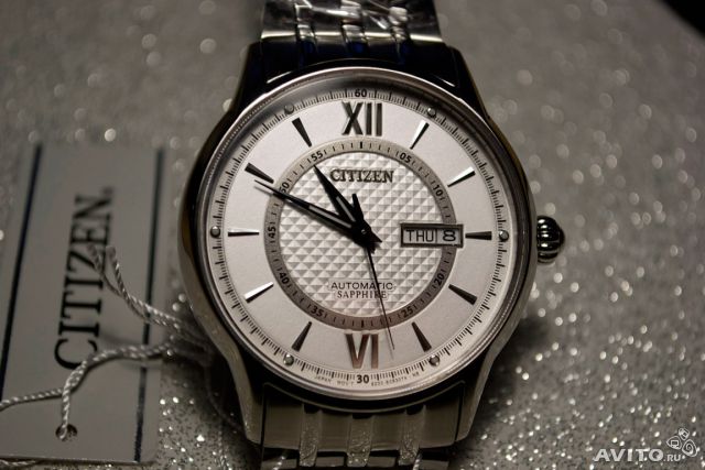 Расстаюсь вот с такой великолепной японской механикой, купленной тут же на форуме - Citizen NH8325-56A. 2 снятых звена прилагаются. Автоподзавод и ручной завод, сапфир с антибликом. Серебристый циферблат с гельоше - "женевские гвозди". Яркий люминофор на стрелках и метках. Стрелки контрастные воронёные. Водозащита 100 метров - система DS, плавай - не хочу!. Прекрасный литой браслет с застёжкой-бабочкой. Часики приятной тяжести - 155 г и не тонкие, солидные, но традиционные. Про механизм и говорить нечего: Citizen Automatic cal. 8200 на 21 рубиновом камне - механика у "гражданина" нонче вообще редка! - (а этот калибр - не дешевая мийота, которую ставят швейцары в "леманы" австрийской линии за 14 тыр!)))), ip-покрытие, запас хода > 40 часов. Корпус - нержавеющая сталь 316L. Диаметр 40 мм, толщина 12 мм. Точность хода +5+7 сек/сут. Ротор однонаправленный, но подзавод не менее эффективный, чем на дорогущих Сейко. А по соотношению "цена/качество" этот аппарат бьет любого бюджетного швейцара!