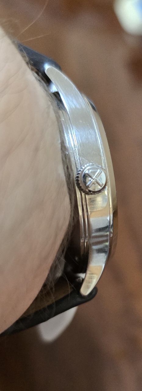 Ремешок из крокодиловой кожи заменил пока на телячью кожу, чтоб привыкнуть, раньше носил грубый металлический браслет. Застёжка красивая.