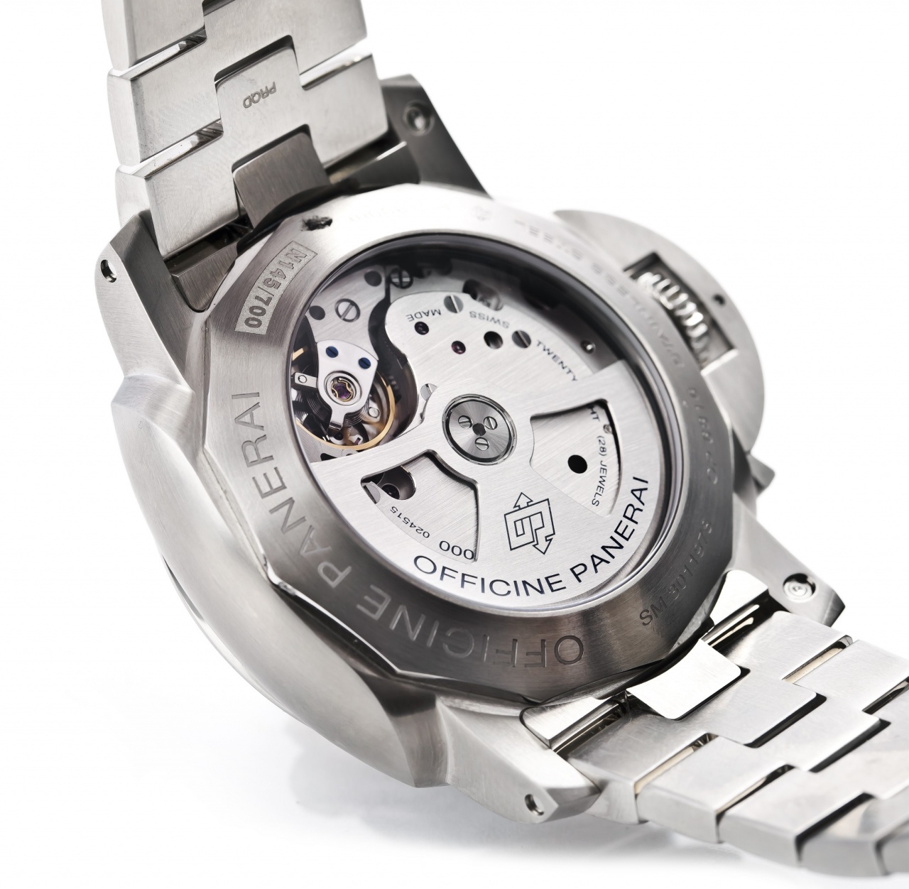 Механизм:Механика с автоподзаводом, эксклюзивный калибр Panerai Р.9000, 28 камней. Балансир Glucydur®, совершающий 28 800 полуколебаний в час. Противоударное устройство Incabloc®. Запас хода 3 дня.