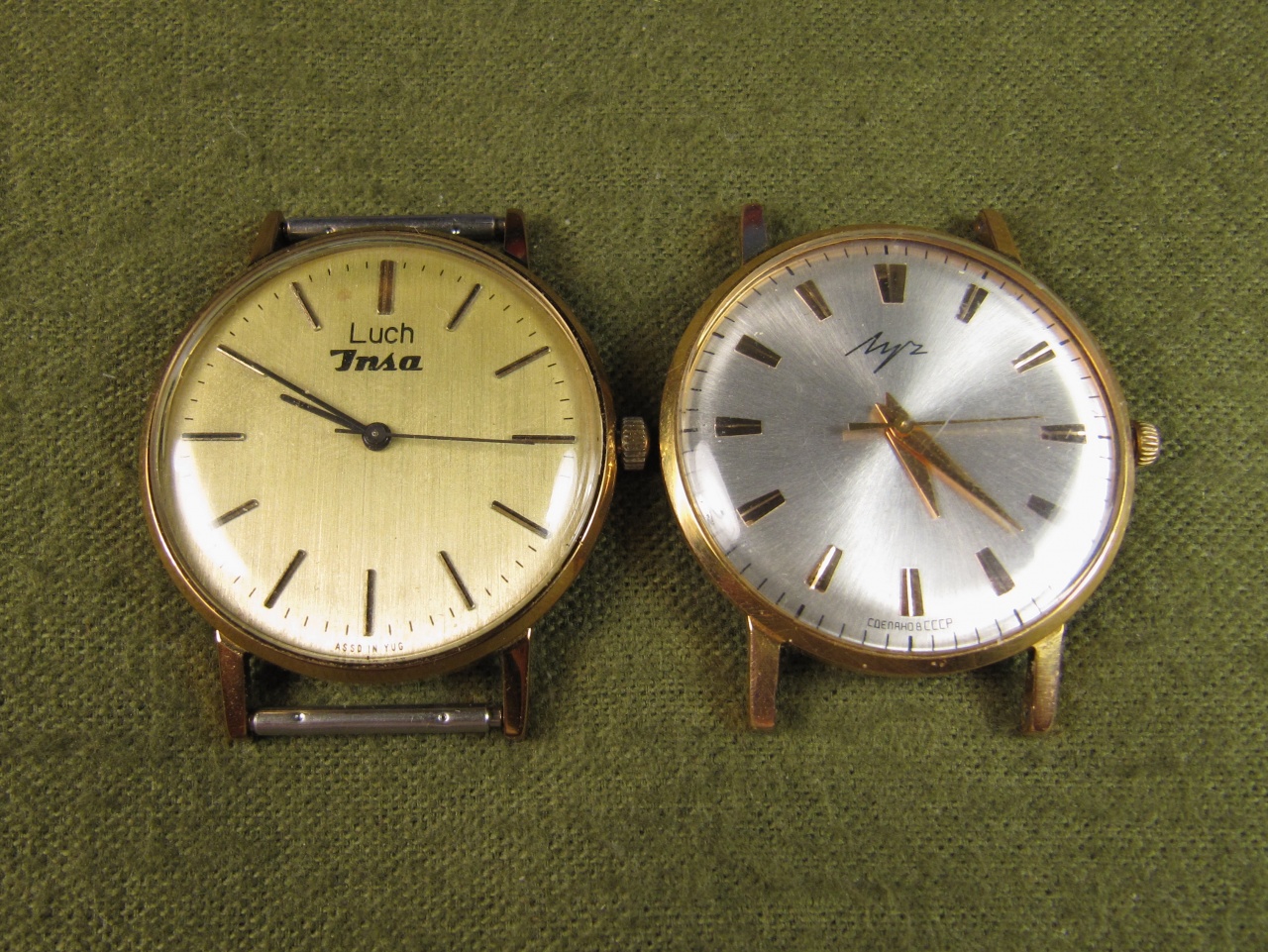 Собирались в 90е годы на белградской фабрике Insa часики с говорящей двойной маркой Luch-Insa. Давно уже знал про существование такого явления - определил их как одну из целей поисков перед отпуском в бывш. Югославии, но, увы, не там они не попадались. И вот некоторое время назад взял инициативу в свои руки - пошерстил сербские доски объявлений, пообщался с одним приятнейшим продавцом (на сербском...) - и вот, недавно приехала из Сербии посылочка с такими часиками. Шлифованный металлический циферблат с надписью "ASSD IN YUG", внутри кварцевый Луч 2356. Интересно, есть ли у часов минский близнец в таком же точно оформлении с металлическим цифером? Судя по найденному ассортименту внешних оформлений, часы делались в 90е. Кто-нибудь знаком с историей вопроса? Каким-то образом во время санкций ООН в 90е в Югославию просачивались минские запчасти, или это производство таки самого начала или, наоборот, конца 90х?