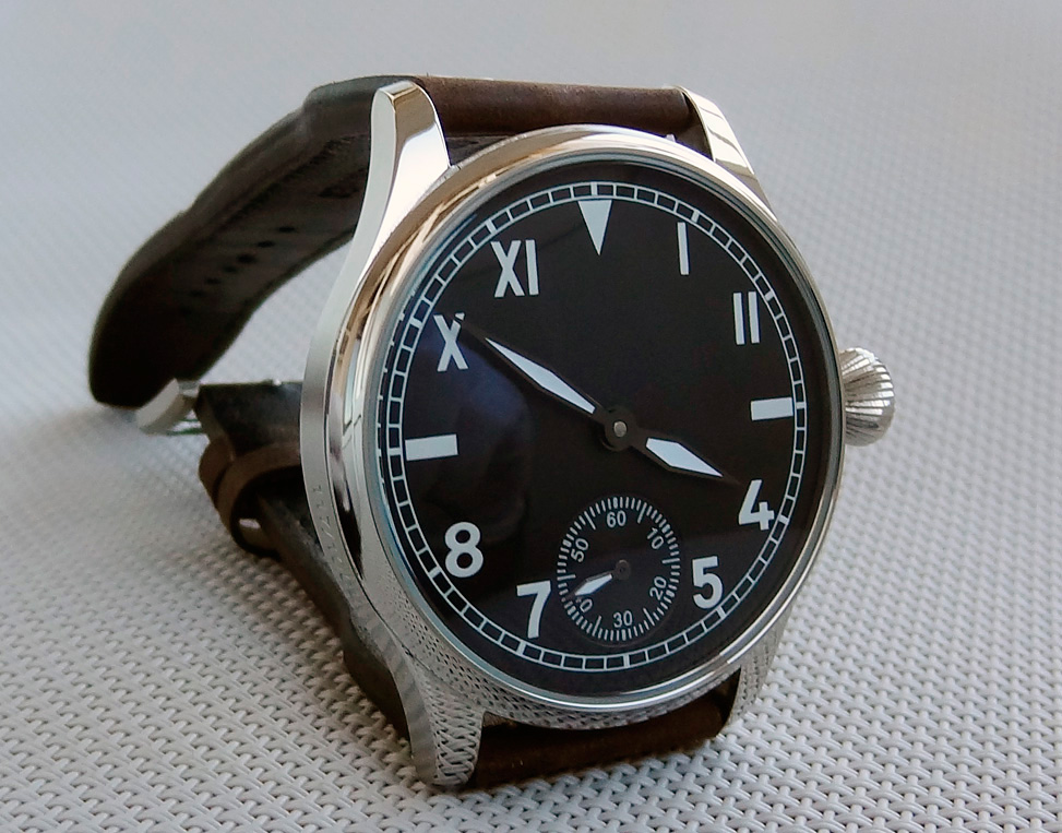 Качественные мужские часы California с ручным заводом. Калибр Seagull 6498 на 17 рубиновых камнях, богато декорированный. Завод на 50 часов. Калибр надёжный и очень точный. Корпус из 316L стали. Стекло выпуклое минеральное. Стрелки и цифры покрыты Luminova. Высококачественный ремень из натурального толстого нубука с красивой мощной пряжкой. Часы - 117/1000 шт. Точный ход. Абсолютно новые.