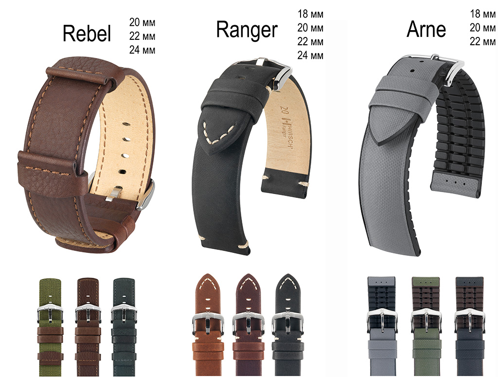 Rebel - это вариация от HIRSCH на тему NATO, хотя от первоисточника тут далеко. Издели ближе к своего рода напульснику. Ремень представляет собой сплошную полосу с двигающимися по ней ушками для крепления часов. Конструкция остроумная. Кожаные варианты (а есть и нейлоновый) выполнены из материала, аналогичного по моим ощущениям с HIRSCH Mariner.
