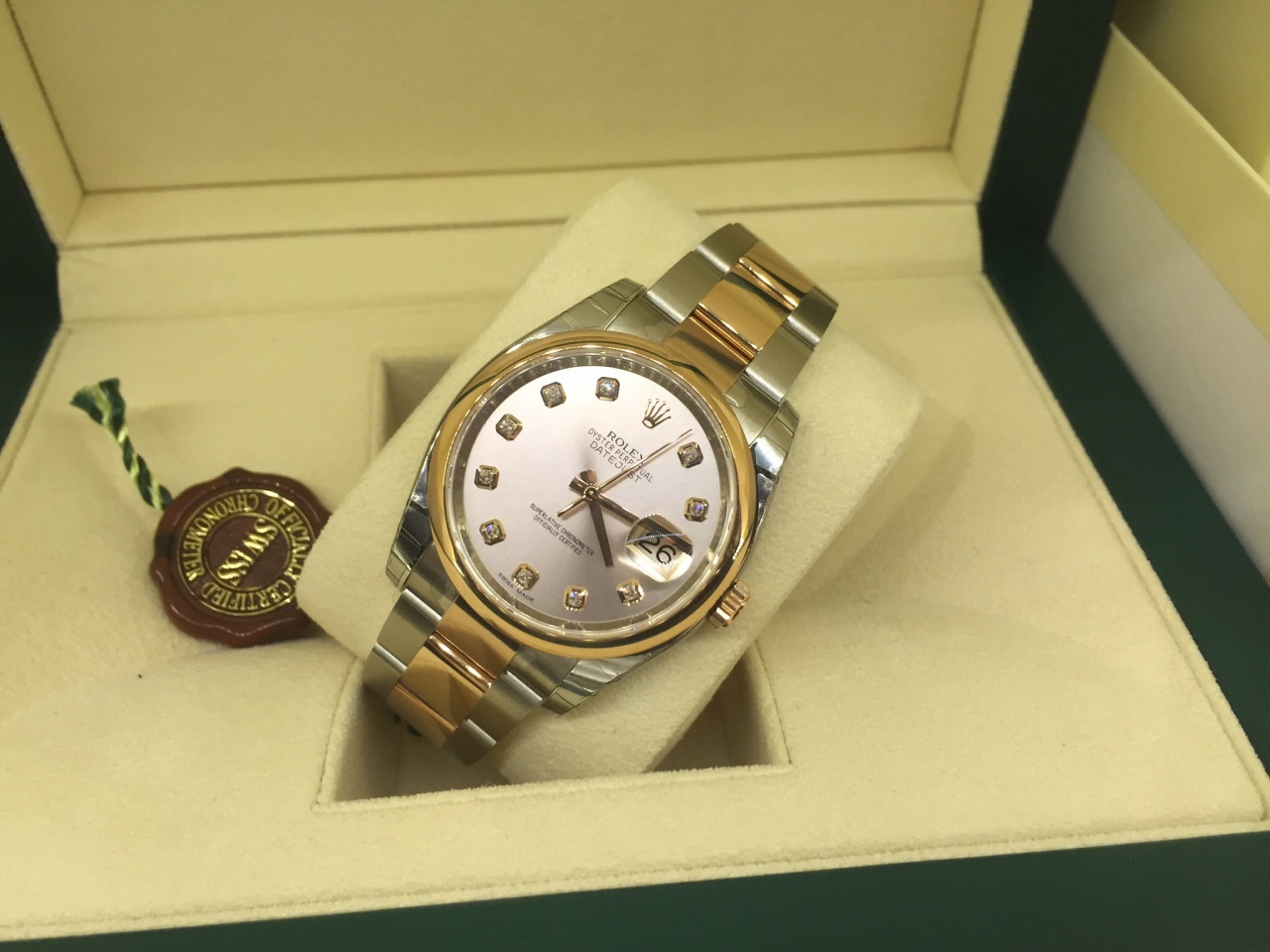Циферблат Розового цвета, бриллианты по меткам