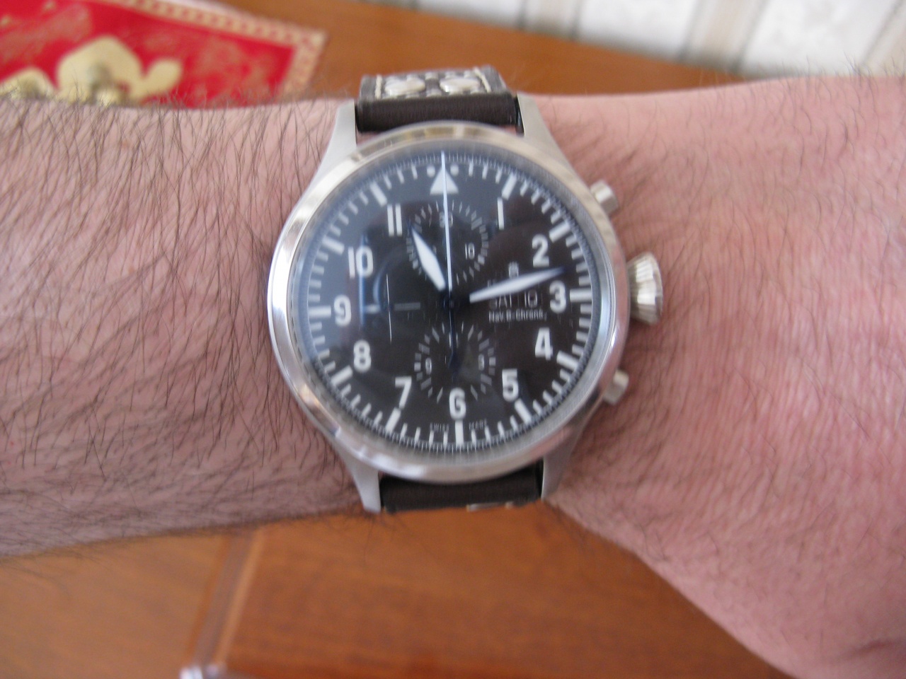 - люблю хронографы (и вообще часы с полезными усложнениями - а хронограф с 12-часовым измерением и с днём недели/датой я таковым и считаю), особенно на неубиваемом механизме Valjoux 7750 - посмотрим, не стал ли он хуже после поглощения фирмы Valjoux фирмой ЕТА;