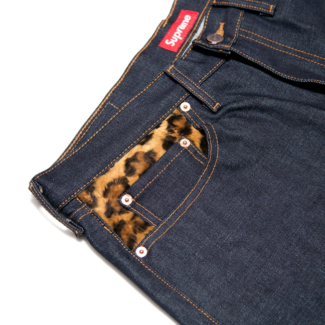 Джинсы редкие, из ограниченной леопардовой серии премиум коллекции 2012г - Supreme X Levi's Supreme Selvedge Denim Orange Tag, Made in USA, San Francisco, California.