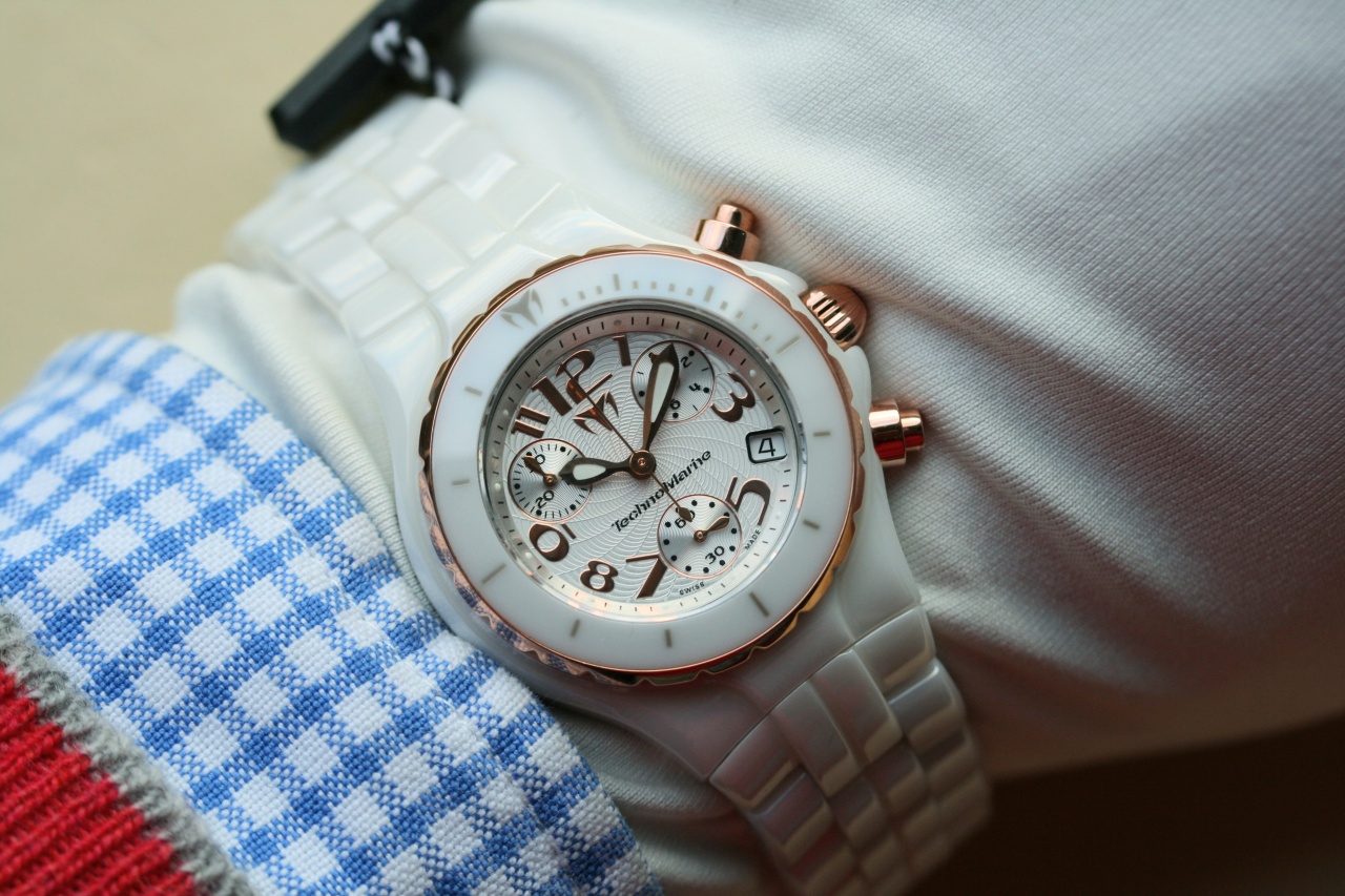 < < < [женский хронограф] TECHNOMARINE MOONSUN ** белая керамика ** браслет > > >