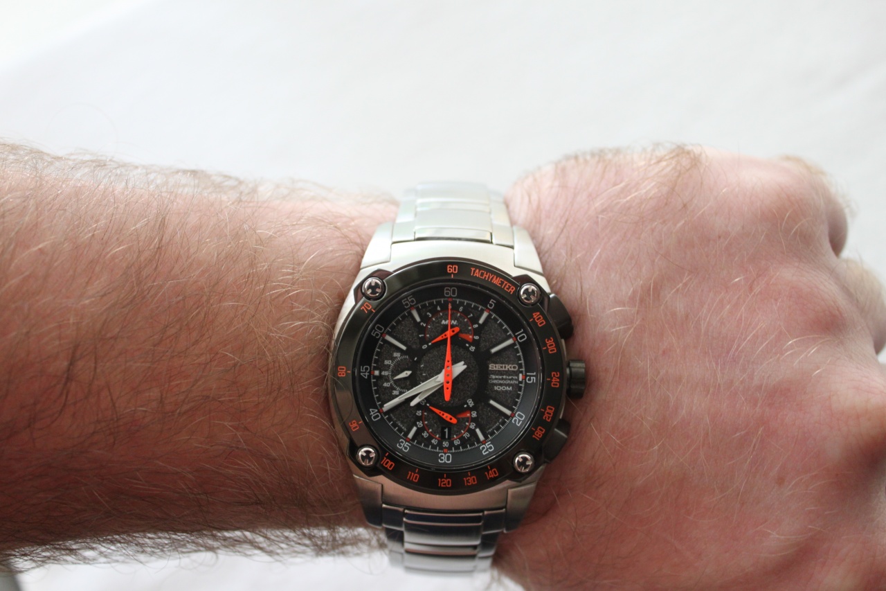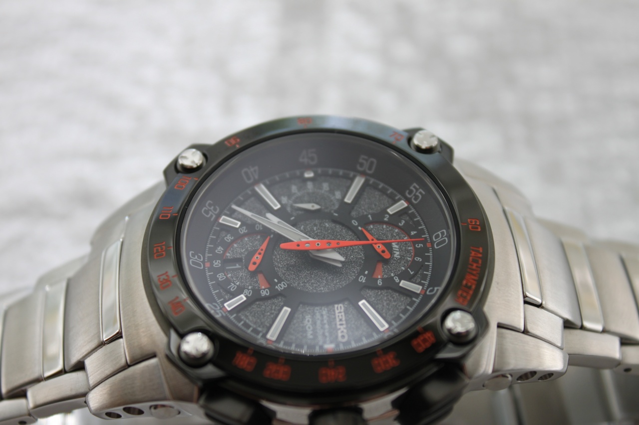 Часы-хронограф с секундомером и тахиметром. Ретроградные указатели секунд и минут. Калибр 7T85. Секундомер с точностью показаний 1/5 сек и временем измерения 300 минут. Индикация числа. Задняя крышка с винтовым фиксатором. Корпус и браслет часов выполнены из нержавеющей стали. Функция индикации заряда - EOL.