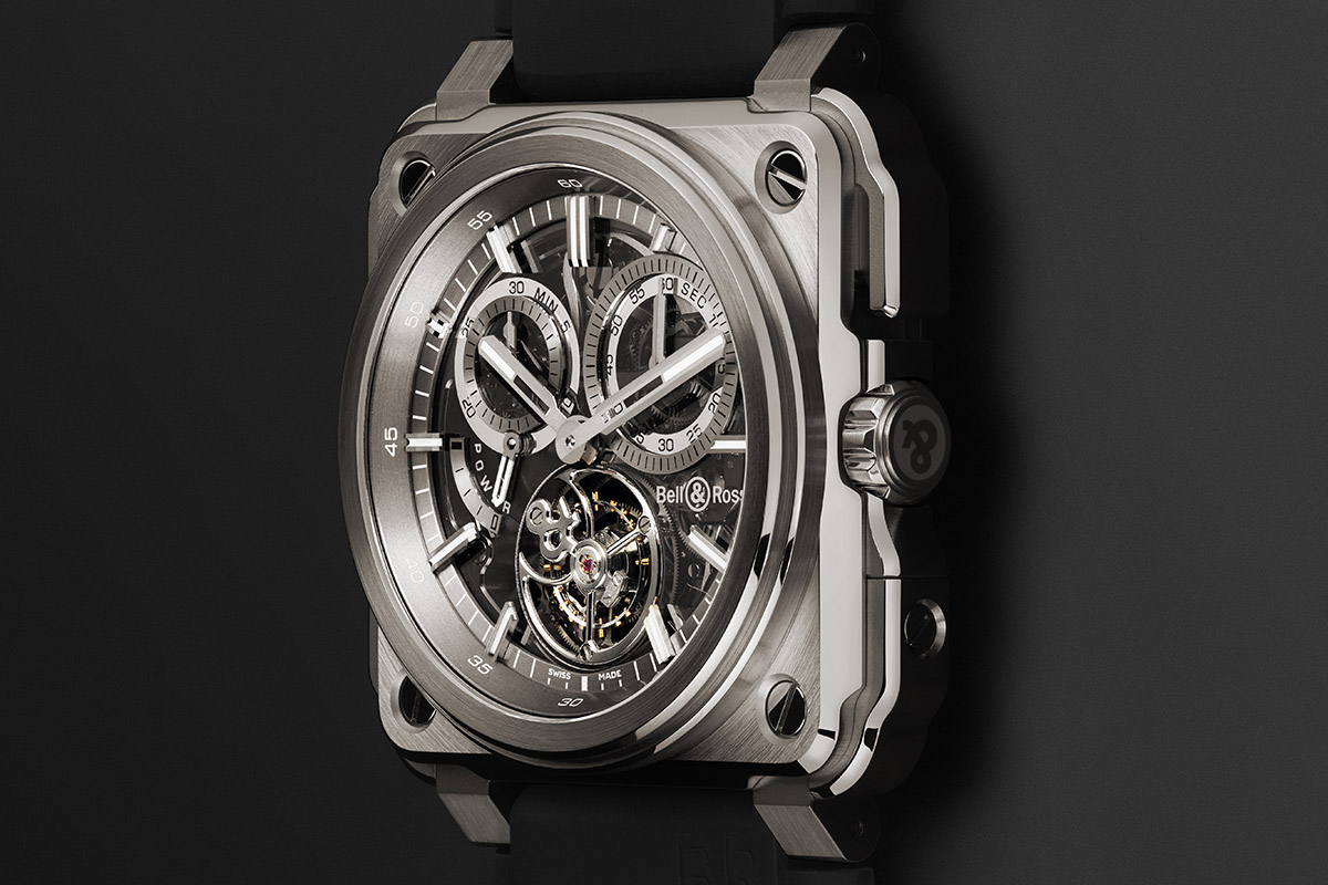 Новая лимитированная модель BR-X1 Chronograph Tourbillon Monopusher от швейцарской часовой компании Bell & Ross представлена в двух вариантах: в титане 5 (легированном ванадием и алюминием) и в 18-каратном розовом золоте.