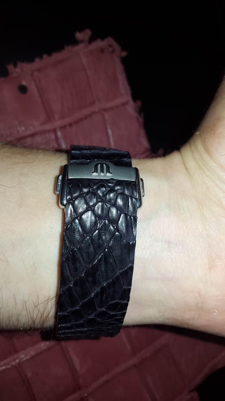 А вот недавно подумал, что негоже хорошим часам лежат "инвалидами". И решил заменить-таки. Но к тому моменту (после этапа ПАМо-страпомании)уже были знакомые мастера ременных дел. Поэтому решил сделать у кого-то из них. Во-первых, большой выбор кожи (официальное предложение- 2 цвета "плоского" крокодила), во-вторых, стоимость в несколько раз ниже.