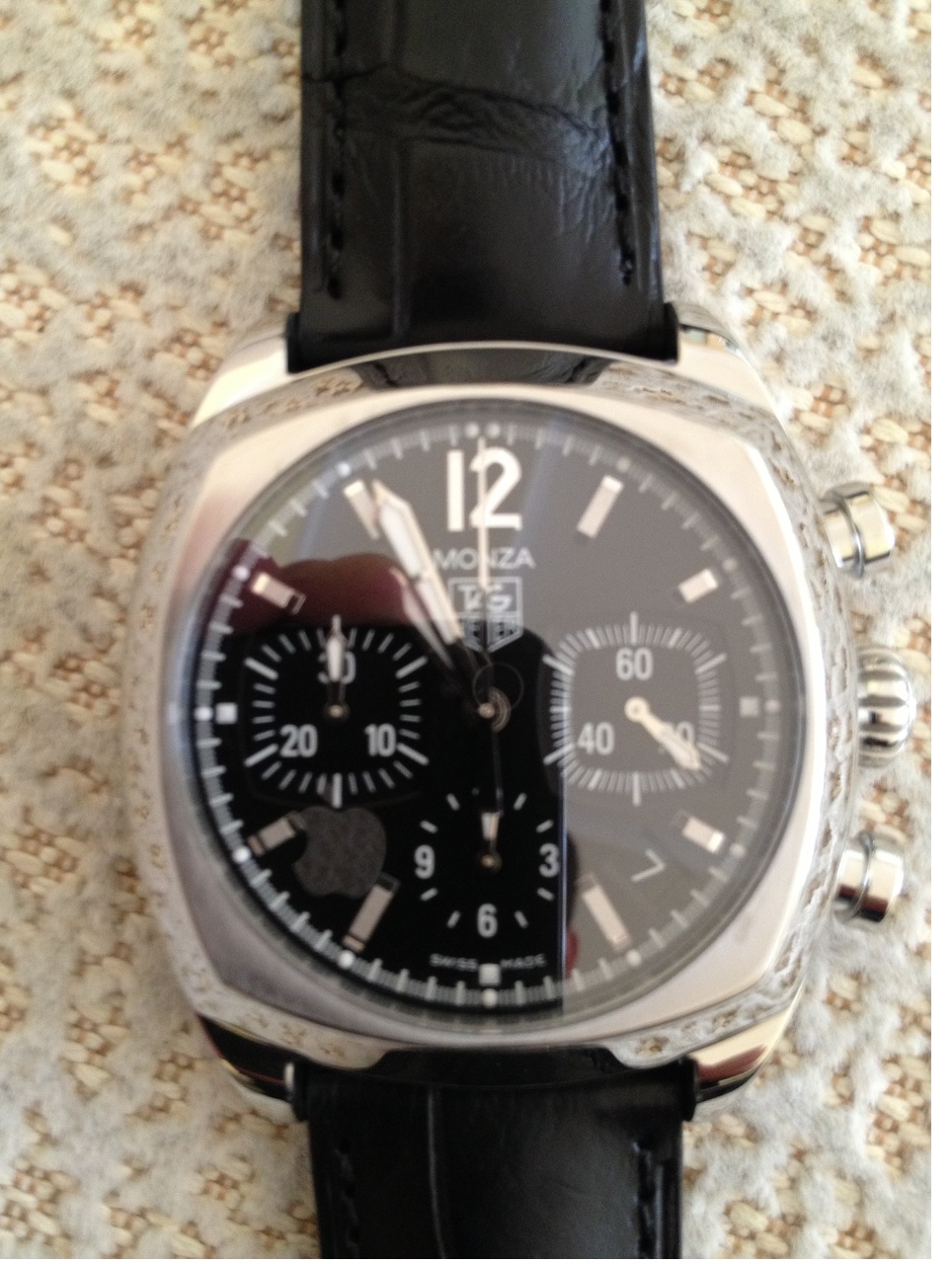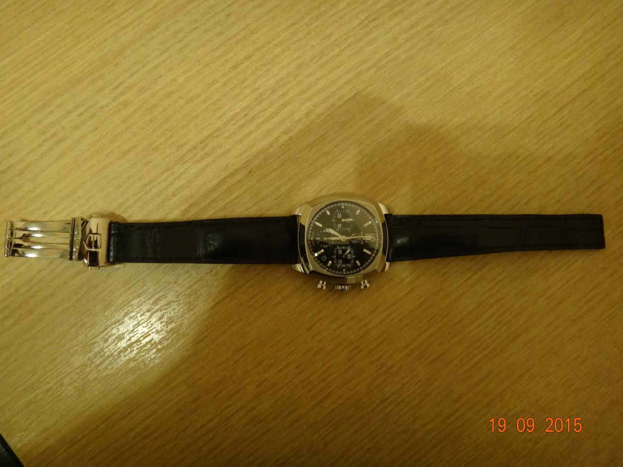 Размер корпуса 38х38 мм. Калибр ETA 2895-2, 27 камней, 28800 полуколебаний/час, противоударная система. Функции: часы, минуты, секунды, дата, хронограф с точностью 1/5 секунды. Корпус из антиаллергенной нержавеющей матированной стали с частичной полировкой. Задняя крышка имеет винтовое соединение с корпусом часов. Оригинальный ремешок черного цвета из натуральной крокодиловой кожи. Черный циферблат. Центральная секундная стрелка хронографа. 12-часовой и 30-минутный счетчики хронографа. Часовые стрелки и метки с люминесцентным покрытием. Выпуклое сапфировое стекло с антибликовым покрытием. Водостойкость 50 метров. Фирменная клипсовая застежка. Запас хода не менее 42 часов. Куплены у официального дилера.