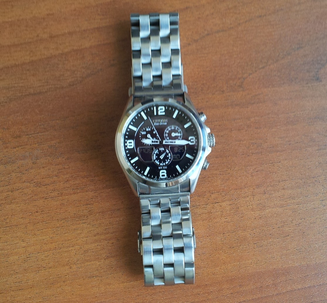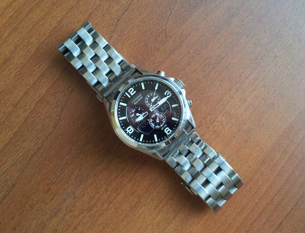 решил вступить в банду ситизеноводов и приобрел часики Citizen JR3180-57E. это такая упрощенная модель Промастера, без логарифмической линейки, радиоконтроля и подсветки. остальное все на борту - мировое время, 3 будильника, секундомер, таймер, стрелки крутятся отдельными моторами ну и эко-драйв, с режимом полного выключения, когда стрелки стоят, экраны выключены, но время унутри идет. цена тоже облегченная - 180$