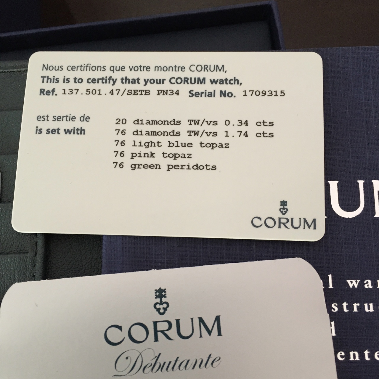 Женские Corum Debutante БРИЛЛИАНТЫ/ТОПАЗЫ/ПЕРИДОТЫ