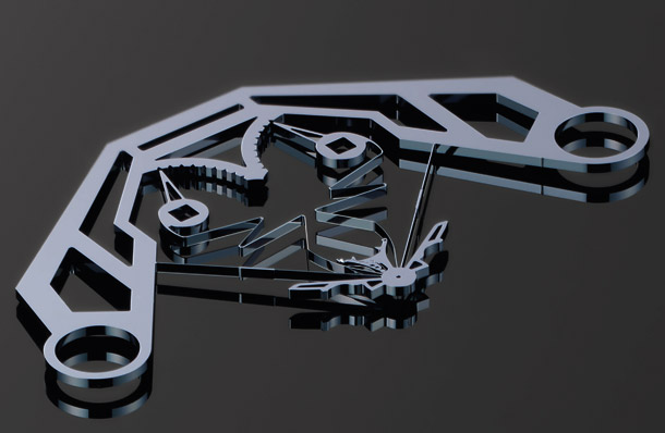 Давайте будем честными и признаем тот факт, что в течении дня не только мужчины, но и многие дамы смотрят на часы чаще, чем в зеркало. Наряду с уникальным электронным дисплеем, концепт InnoVision 2 с минутной стрелкой, не имеющей аналогов на рынке. Это трехмерная стеклянная структура созданная методом точной лазерной резки. При этом разрешение, которого можно добиться, колеблется от трех до пяти микрометров. Для того, чтобы убедиться, что тонкое стекло не повреждено в процессе резки, оно насаживается на тонкую металлическую пластину.