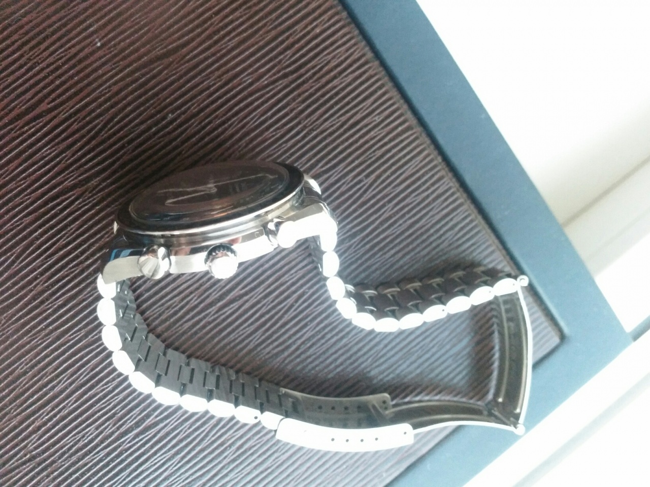 с сверх читаемым циферблатом и белыми стрелками, на браслете.