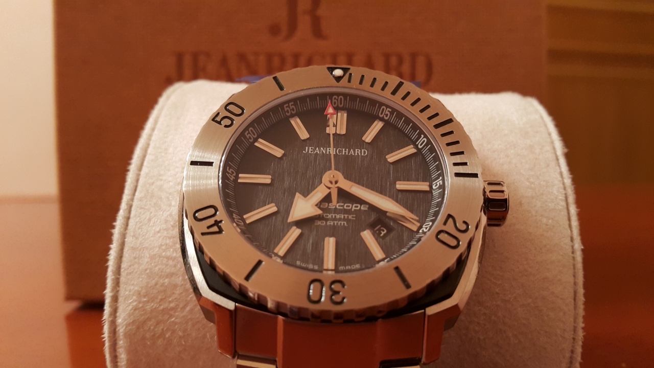В продаже шикарные брутальные дайверские часы от швейцарской мануфактуры JeanRichard, которая является "младшей сестрой" всемирно-известной мануфактуры Girard-Perregaux