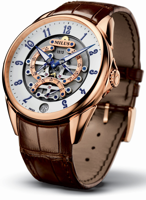 Создается ощущение, что компания пытается удержать свое место в мире «от орложери» интерпретируя одну из более или менее удачных моделей. Вот и в этом году MILUS, обратившись за вдохновением к истокам марки, в славный 1919 год, представила Tirion TriRetrograde Seconds Skeleton 1919. Модель, выпущенную ограниченной серией в 38 экземпляров, отличает от предыдущих наличие числового индикатора. Впрочем, эти часы и «массовая» версия в стиле хай-тек, с корпусом из титана, производят достойное впечатление и очень приятные на вид.