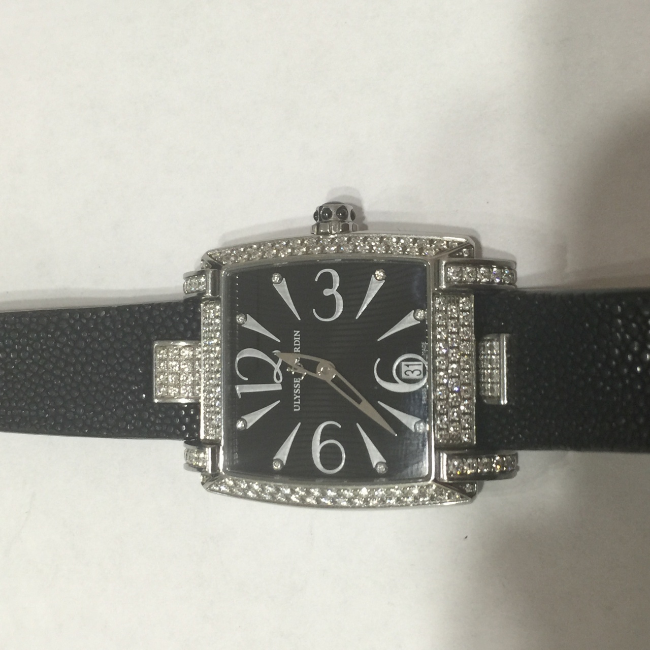 Ulysse Nardin Caprice with Diamond Case - Steel on Strap with Black Dial