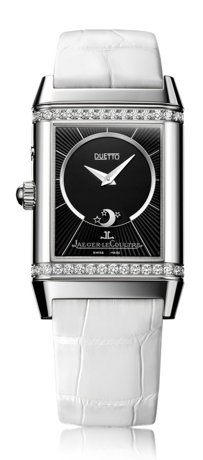 Размеры новой версии женской модели Reverso Duetto Duo несколько увеличены. На одной из сторон корпуса - классический дизайн Art Deco, на второй - изысканный, подчеркнутый двойным рядом бриллиантов.