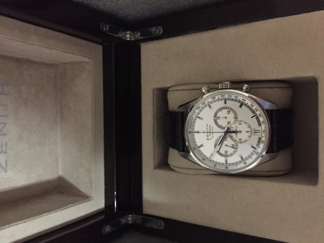 Продаю Zenith El Primero. Ref. 03.2040.400. C хронографом. Были получены в подарок, носил их месяц. Состояние идеальное. Ремешок менять не нужно. Полировать не нужно. Профилактика не нужна. Ход отличный. Наверное, можно найти какие-то естественные микроцарапины под лупой от месячной носки, но я ничего не вижу. Полный комплект - коробка, документы.