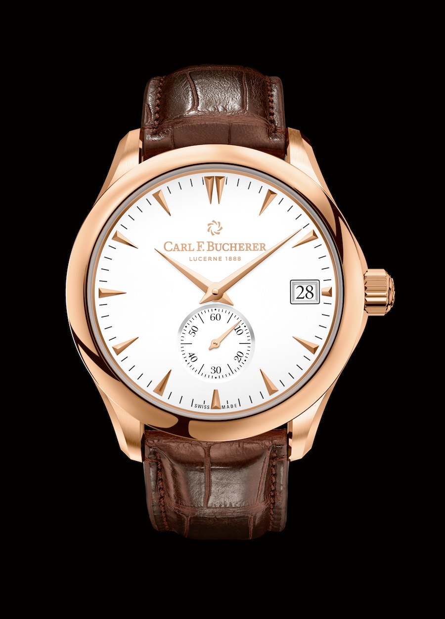 Круглый полированный корпус новинки, изготовленный из 18-каратного розового золота или из нержавеющей стали, диаметром 40,6 мм, водонепроницаемый до 30 метров. На торце рифленой заводной головки, расположенной на 3 часах, выгравирована эмблема бренда Carl F. Bucherer. Сапфировое стекло установлено на передней стороне часового корпуса и на его завинчивающейся задней крышке. Циферблат цвета шампанского с накладными гранеными золотыми часовыми индексами и стрелками. Модель оснащена мануфактурным швейцарским автоматическим механизмом Carl F. Bucherer A2000, с балансовой частотой 28800 полуколебаний в час (4 гц), периферийным ротором, функциями индикации часов, минут (посредством соответствующих центральных стрелок), секунд (на соответствующем малом боковом циферблате, расположенном на 6 часах) и даты (посредством соответствующего цифрового указателя в прямоугольной апертуре, расположенной на 3 часах). Калибр сертифицирован в качестве хронометра, отлично отделан и декорирован.