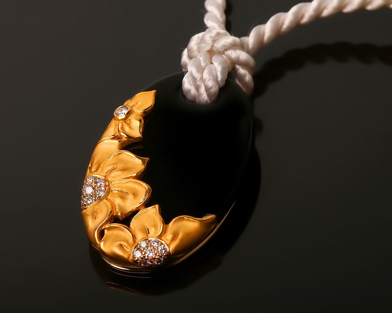 Золотой кулон с бриллиантами и ониксом.Magerit.