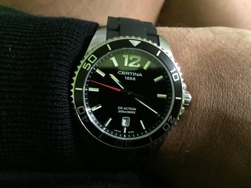 Куплены в январе этого года, использовались мало, причина продажа - покупка более дорогих часов такого же формата. Состояние отличное, есть только естественные царапины на застежке каучукового браслета. Браслет укорочен на большое запястье - 18,5 см, есть возможность его более точной регулировки перестановкой застежки.