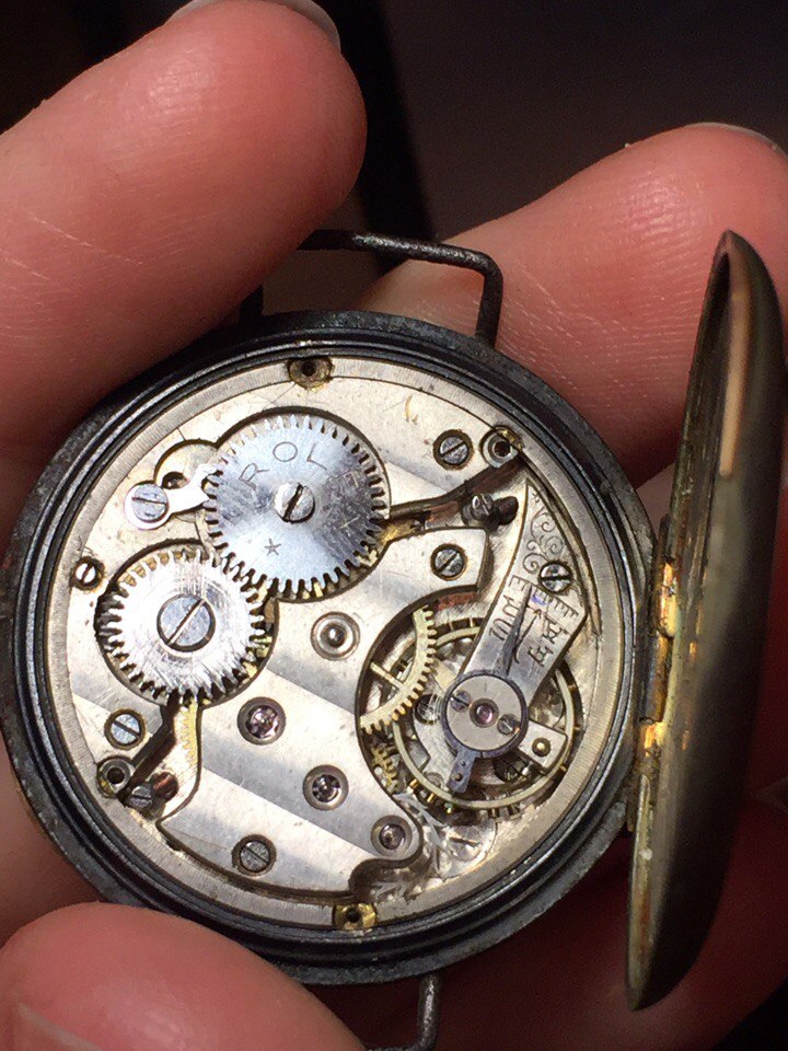 Разбираясь у бабушки в квартире, нашел эти часы. Без ремешка. Секундная стрелка стоит. Видимо заведены до предела, но не ходят, к сожалению. Если потрясти, то секундная передвигаться начинает на несколько делений сама.