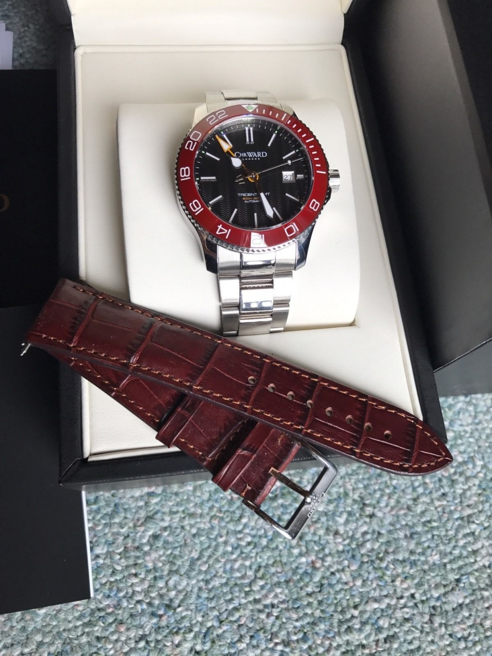 Продам швейцарские механические часы Christopher Ward с автоподзаводом и GMT функцией (второй часовой пояс), с керамическим безелем. Качество отделки часов и материалы не уступают Tag Heuer. В часах используется надежный и точный швейцарский механизм ETA 2893-2. Вдавленные цифры на безеле, сапфировое стекло с антибликом, 600м водонепроницаемость. Часы на полном комплекте (коробка+документы). Куплены в конце 2016 года. Состояние корпуса идеальное, на браслете небольшие следы от ношения. Моя цена - 50 000 руб. Обмен не интересует.