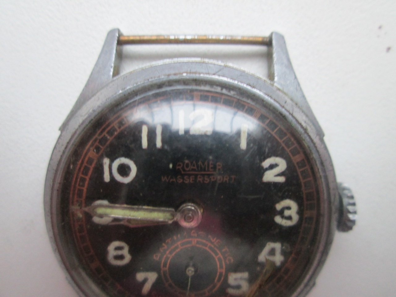 Циферблат, самое проблемное место, похоже, подкрашивался вручную, и это здорово видно - что наименование, что цифры, что разница в оттенке шкал и наименования. Шкалы по кругу не трогали, они выглядят лучше. Но, в целом, именно циферблат будет основным минусом при оценке состояния.
