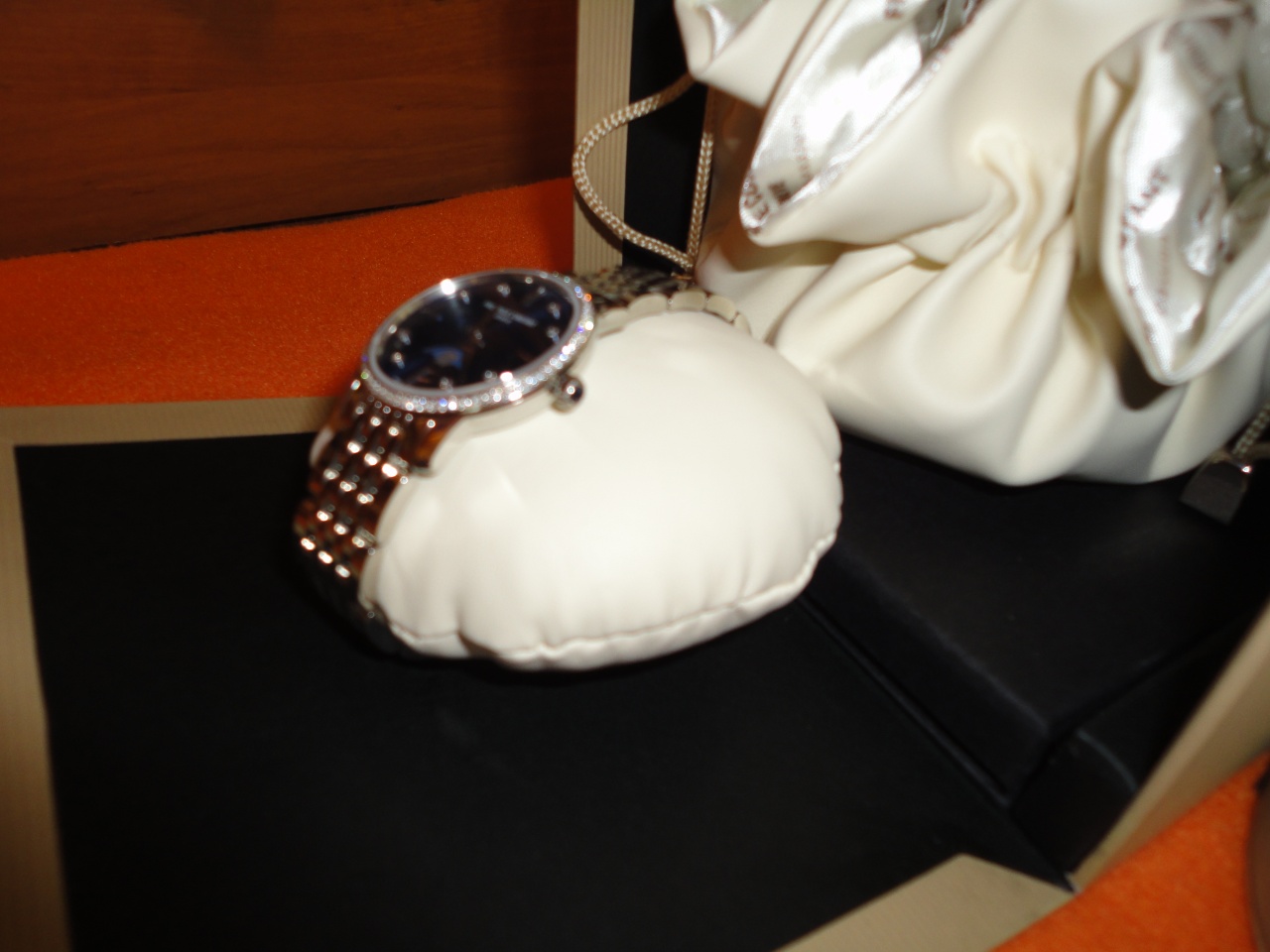 Это великолепные женские часы. Материал корпуса часов — сталь. В этих часах используется сапфировое стекло. Водозащита этих часов 30 м. В этой модели используются такие усложнения как фаза луны. Диаметр корпуса часов составляет 30мм. Данная модель украшена бриллиантами.