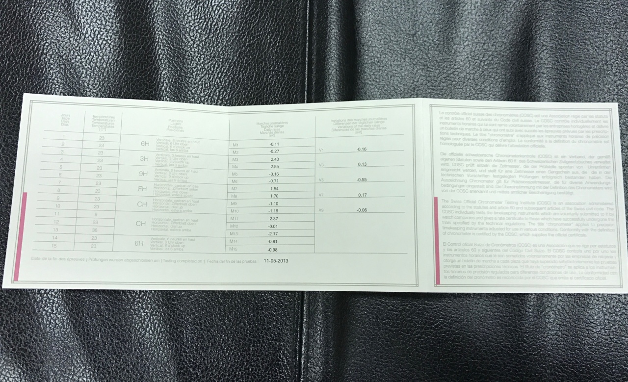 Циферблат Черного цвета, с накладными светящимися точками и арабскими цифрами. Дата в положении «3 часа», секундная стрелка в положении «9 часов».