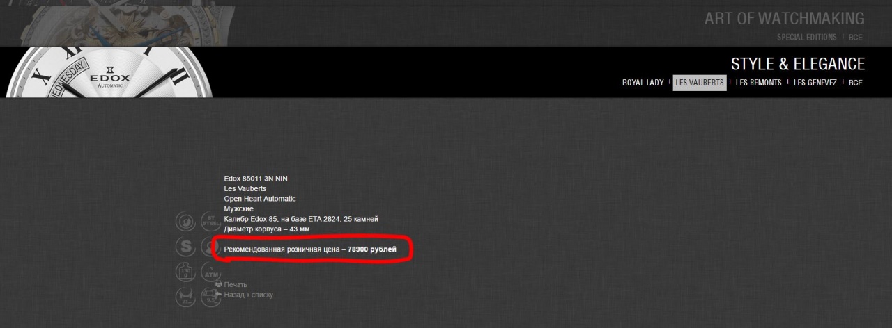 Описание на официальном сайте: http://www.edox.ru/model/85011+3N+NIN