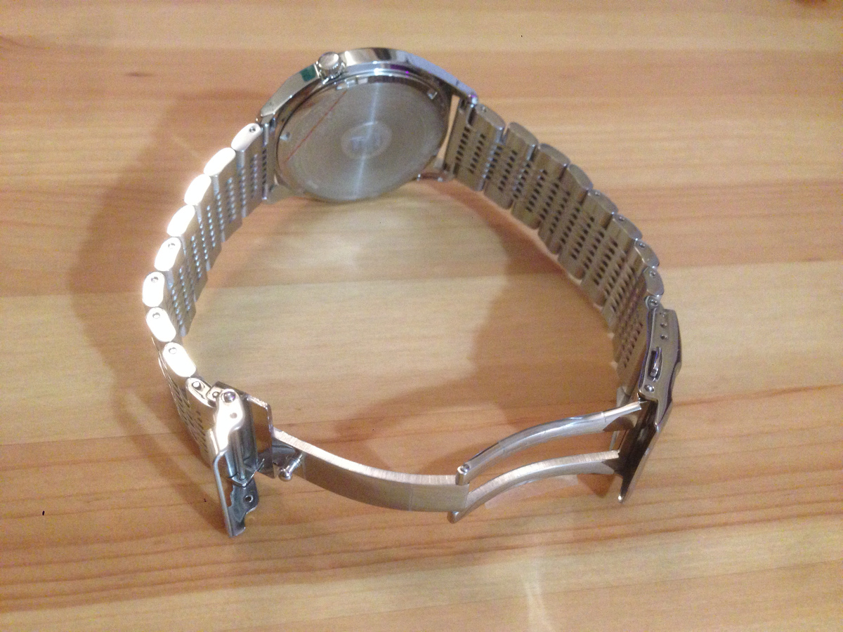 Вот так браслет выглядит на часах. В предыдущем браслете марка стали похоже отличалась от той, что используется в корпусе часов - оттенок металла был другой. В этот раз сталь вроде той же марки - на вид металл браслета от металла корпуса практически не отличается.
