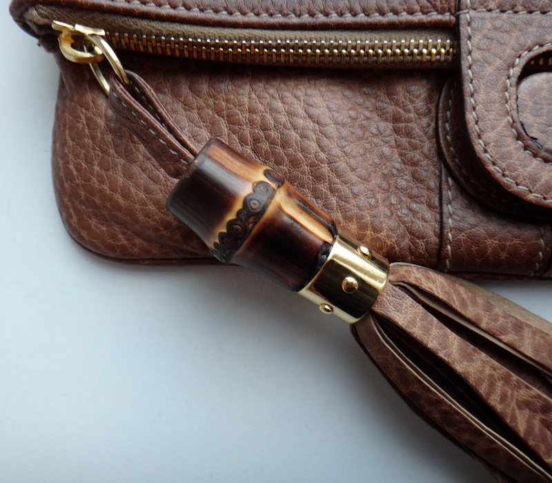 Относится к культовой линейке Gucci Bamboo - украшен элементами из натурального бамбука, обработанного и обожженного вручную.