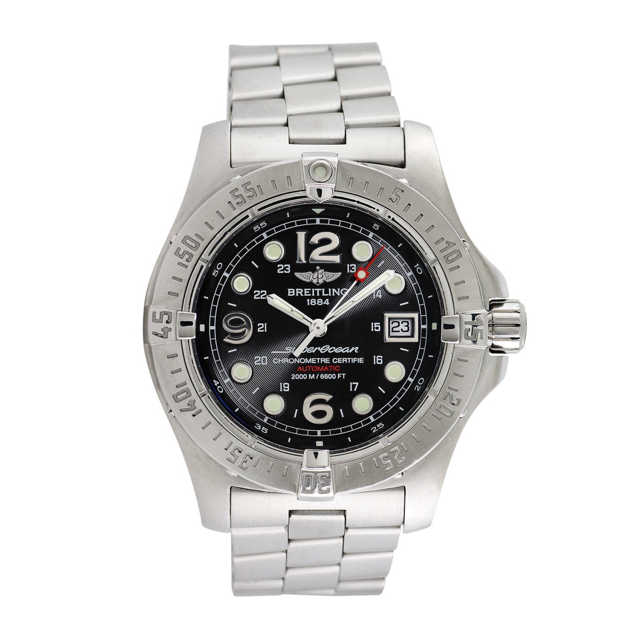 "Matching the specifications of the U.S. Navy's combat swimmers, the SEALS, the COLT SUPEROCEAN was designed as a truly professional diver's watch. The COLT SUPEROCEAN features the strongest, most rugged watchcase ever designed by Breitling; its steel back is 3mm thick while its 3.7mm-thick crystal can withstand pressures equivalent to one ton."