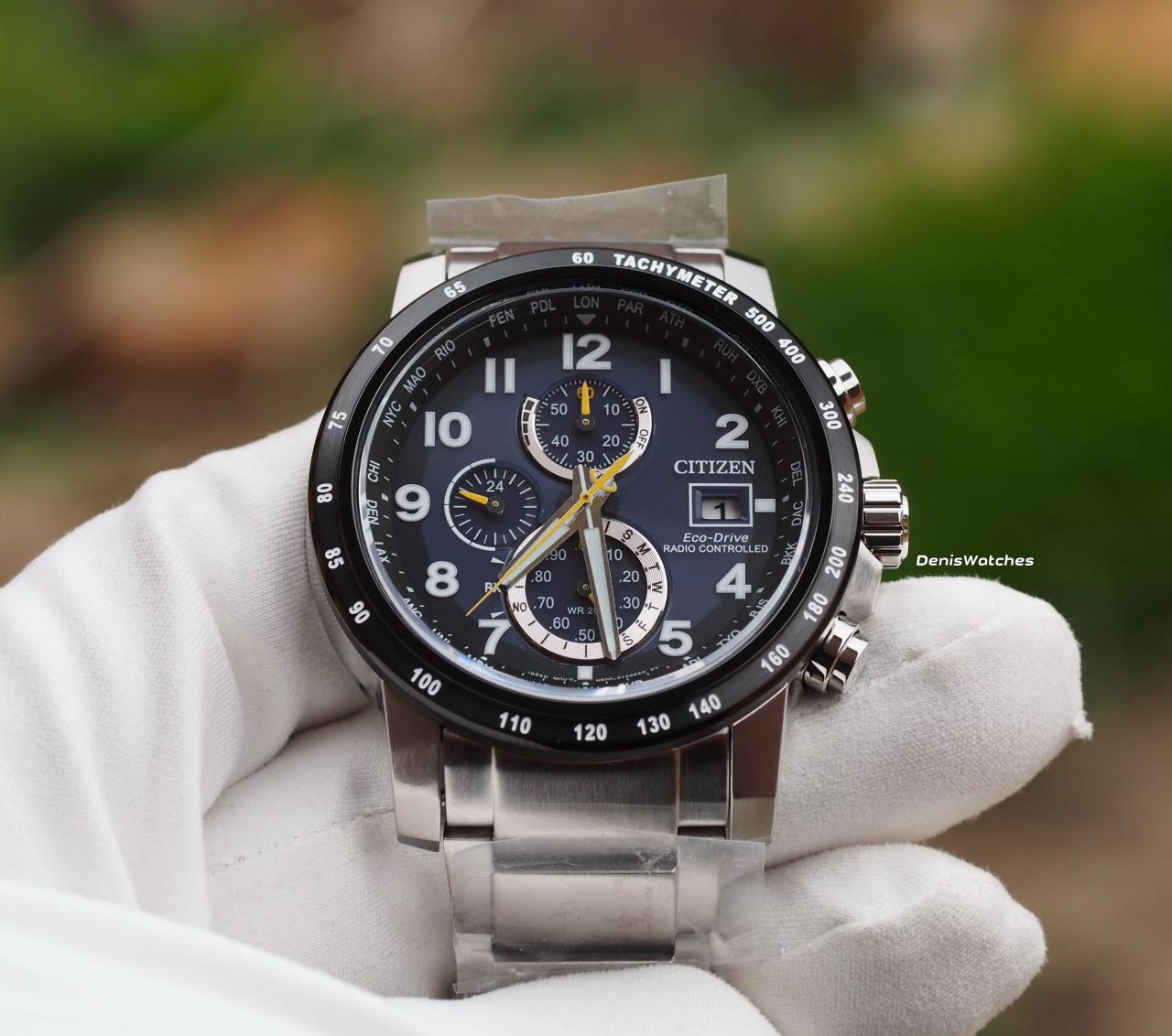 Cиний спортивный хронограф на топовом калибре H800 с всемирным радиоконтролем