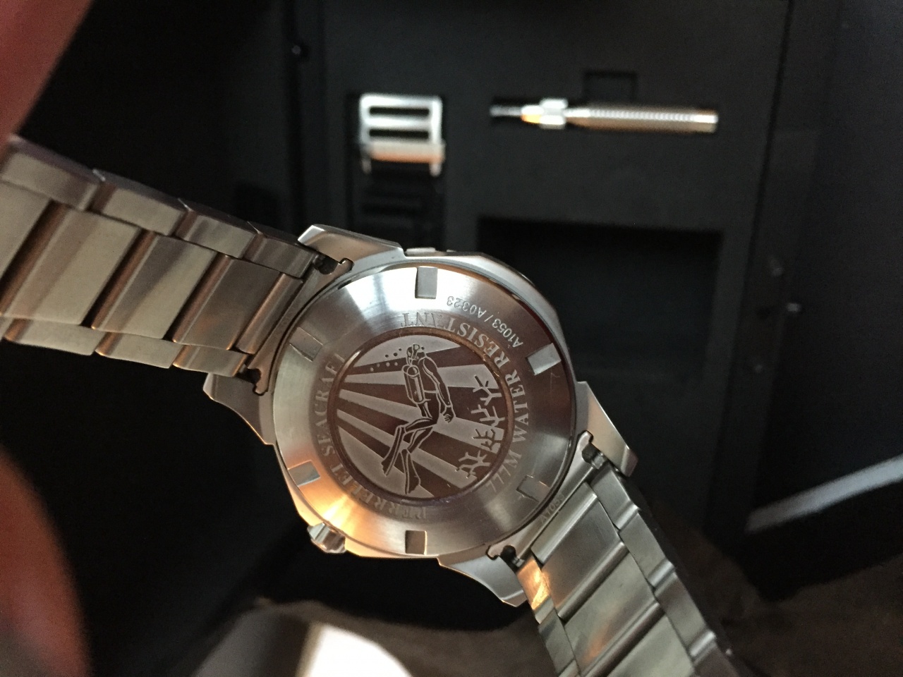В комплекте оригинальный новый тканевый ремень для дайвинга и фирменный съемник браслета.