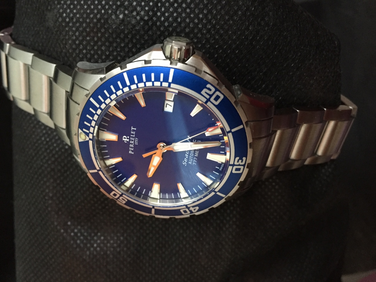Браслет из нержавеющей стали с запатентованным Perrelet расширителем под гидрокостюм.