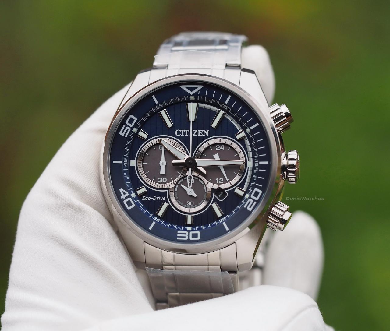 Новый спортивный хронограф от Citizen с красивым синим циферблатом в полоску!