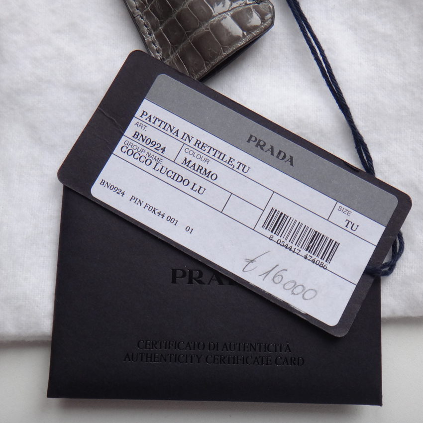 Элитная вещь! Супер выделка крокодиловой кожи, сразу видно что это именно ОН - настоящий крокодил, не тиснение, не имитация! Prada - один из самых топовых luxury-брендов мира! Очень красивый, необычный цвет - в зависимости от освещения приобретающий оттенки от нейтрально серого, до оливкового! Сумка с бонусом - дополнительным ремнем для ношения через плечо (кроссбади!) По такой цене, как продаю я - на мировых площадках предлагают б.у. сумки. Моя сумка - новая!