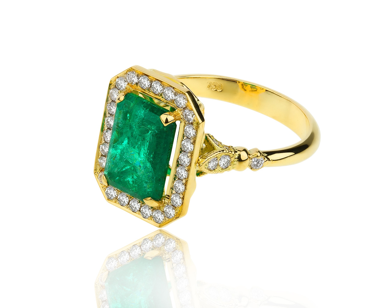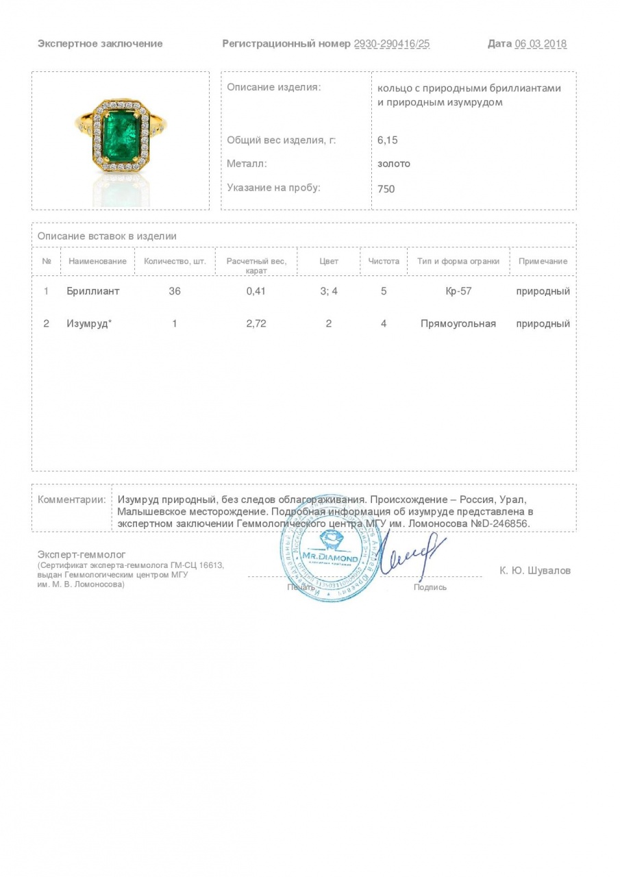 | золотое кольцо, кольцо с изумрудом 2.72ct, малышевский изумруд |