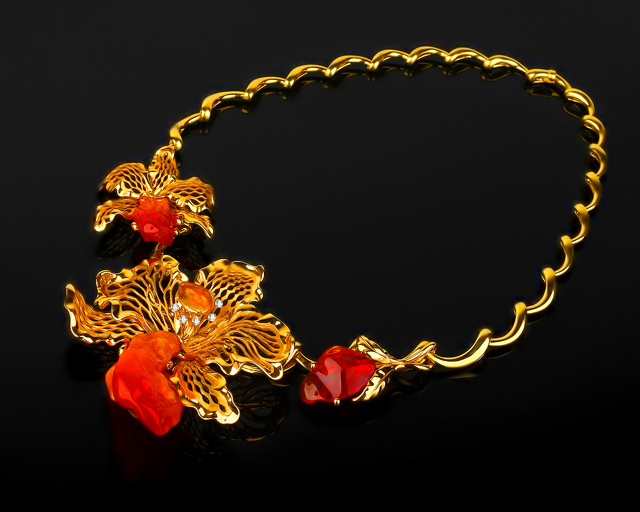 | золотое колье, колье с бриллиантами, мексиканский опал |