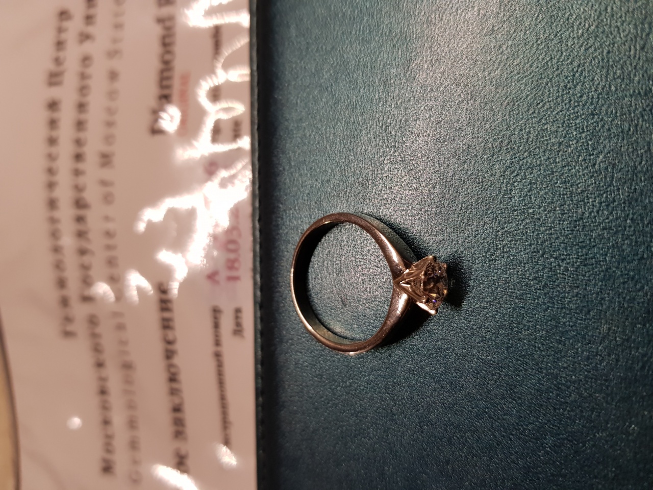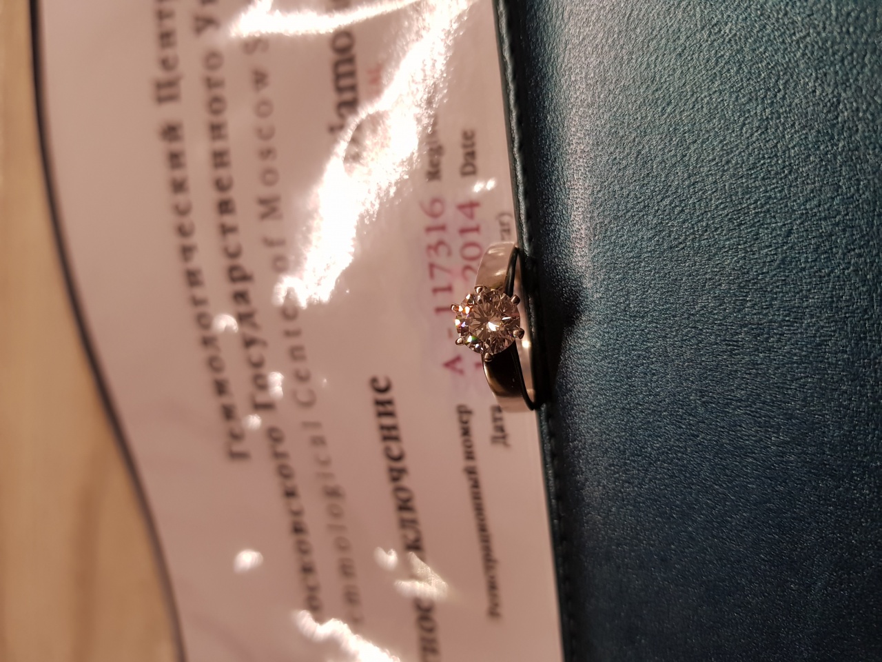 Кольцо из белого золота с бриллиантом 0.87 карат (сертификат МГУ)