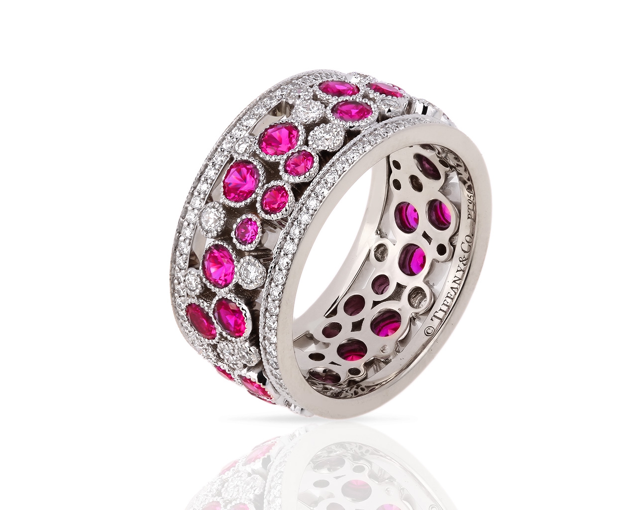 Платиновое кольцо с бриллиантами и рубинами Tiffany&Co