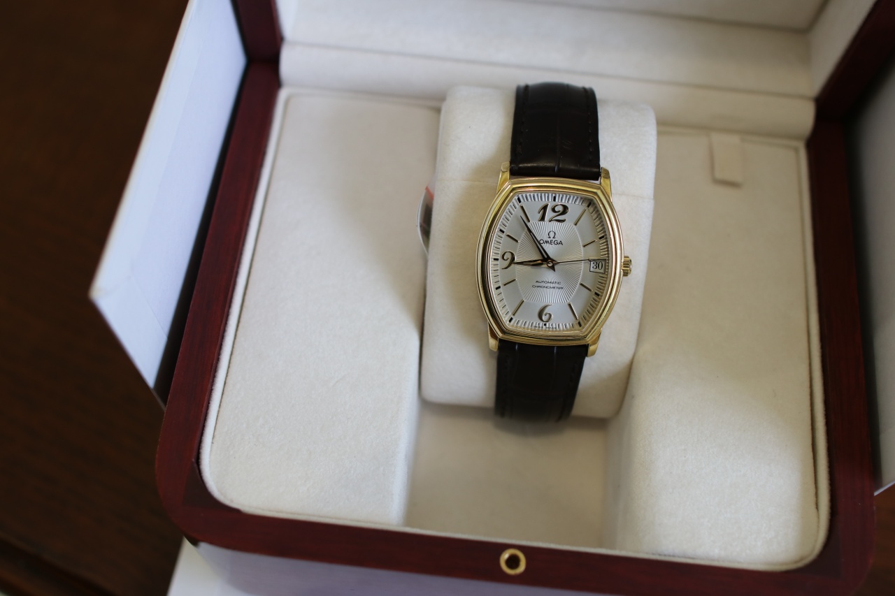 Omega De Ville Tonneau ( Комплект , Желтое золото , Серебристыйциферблат )