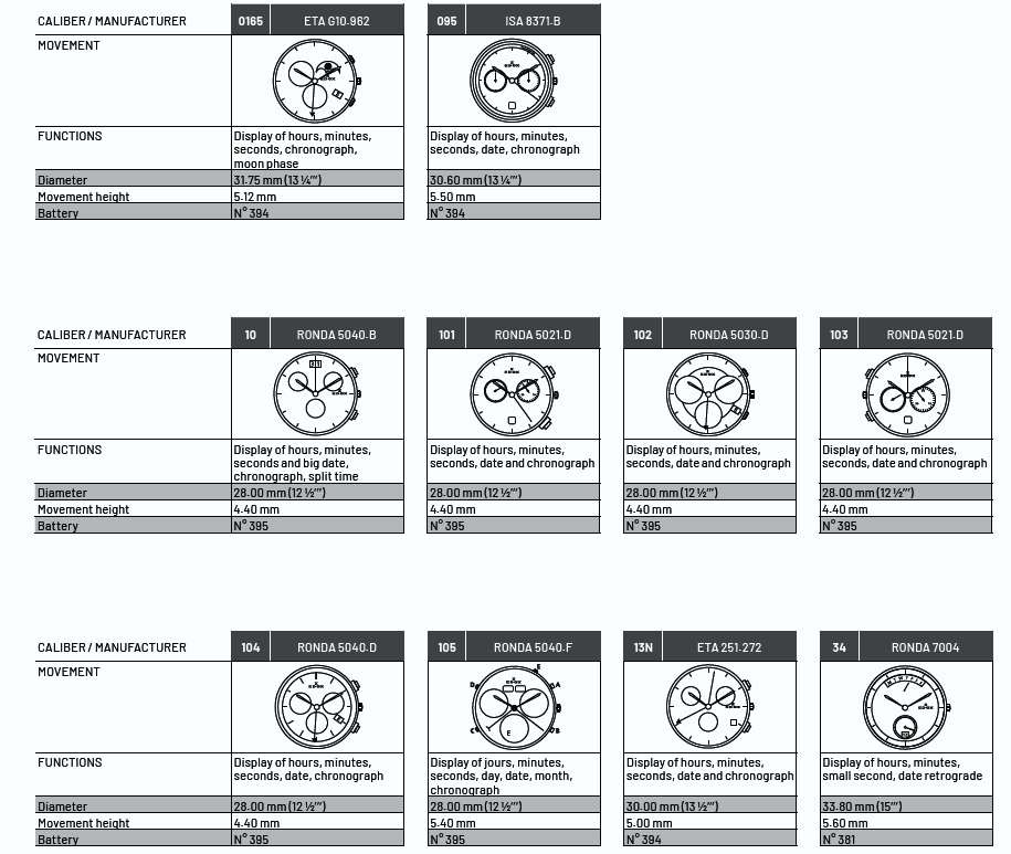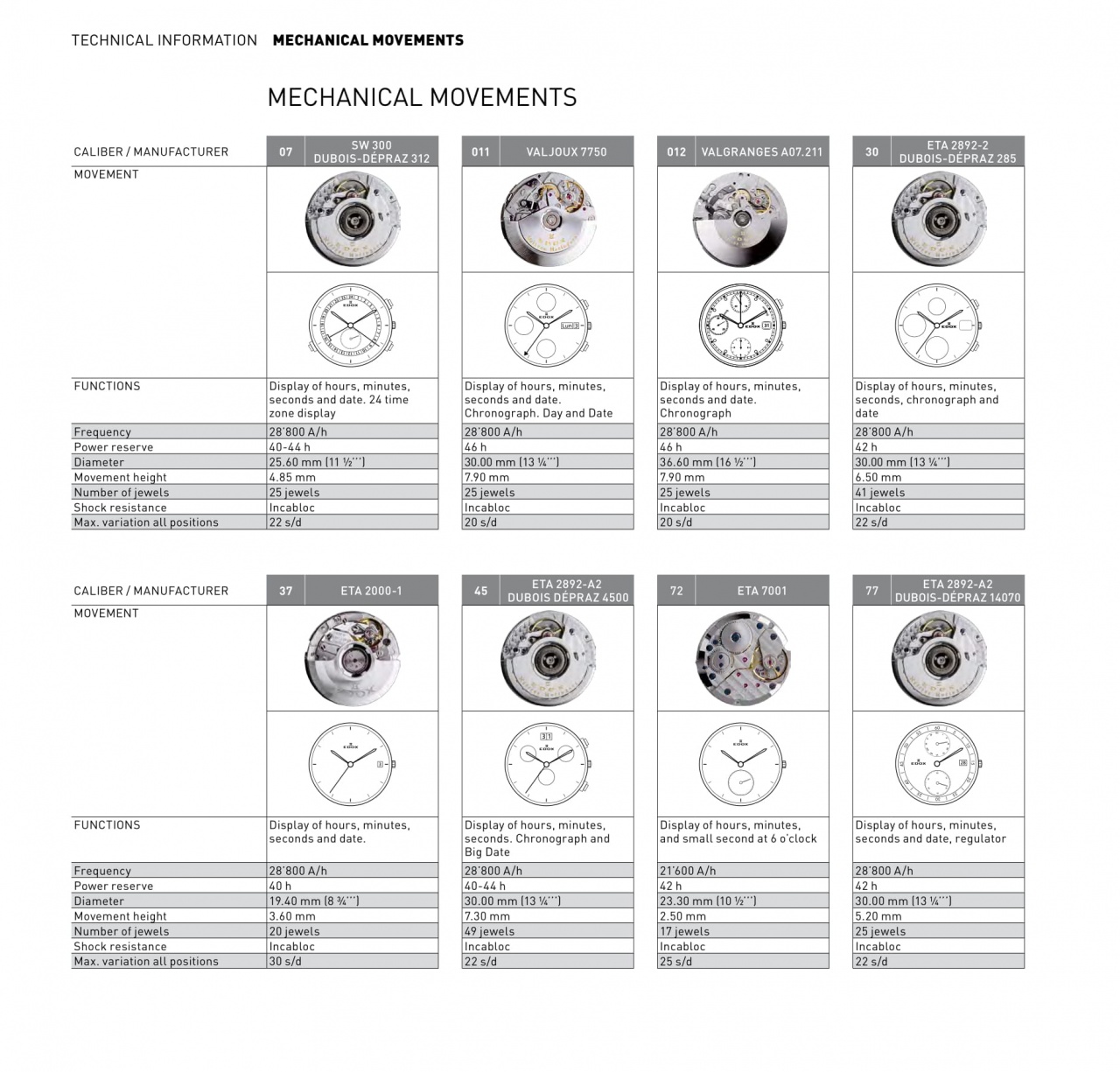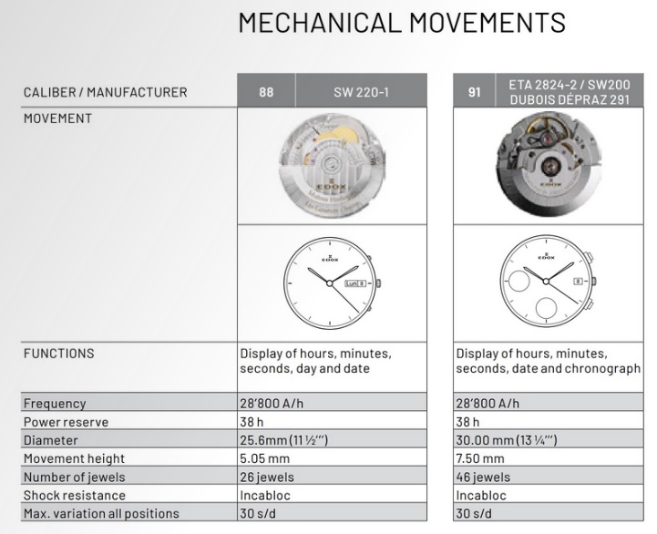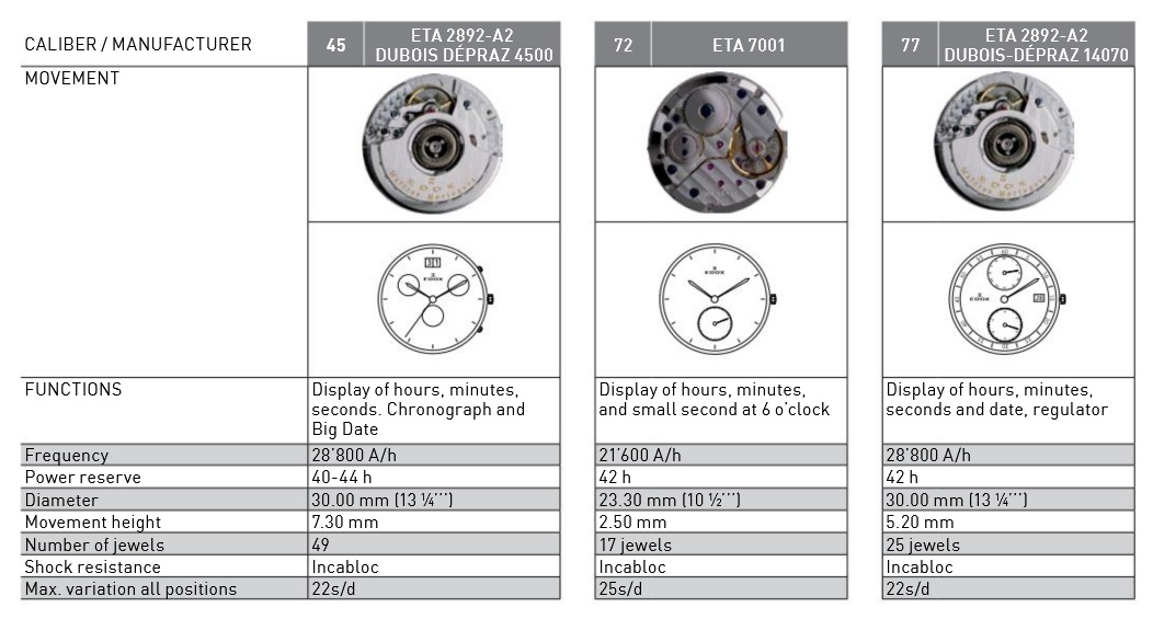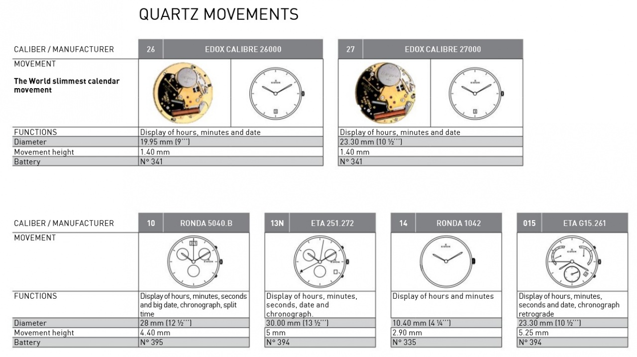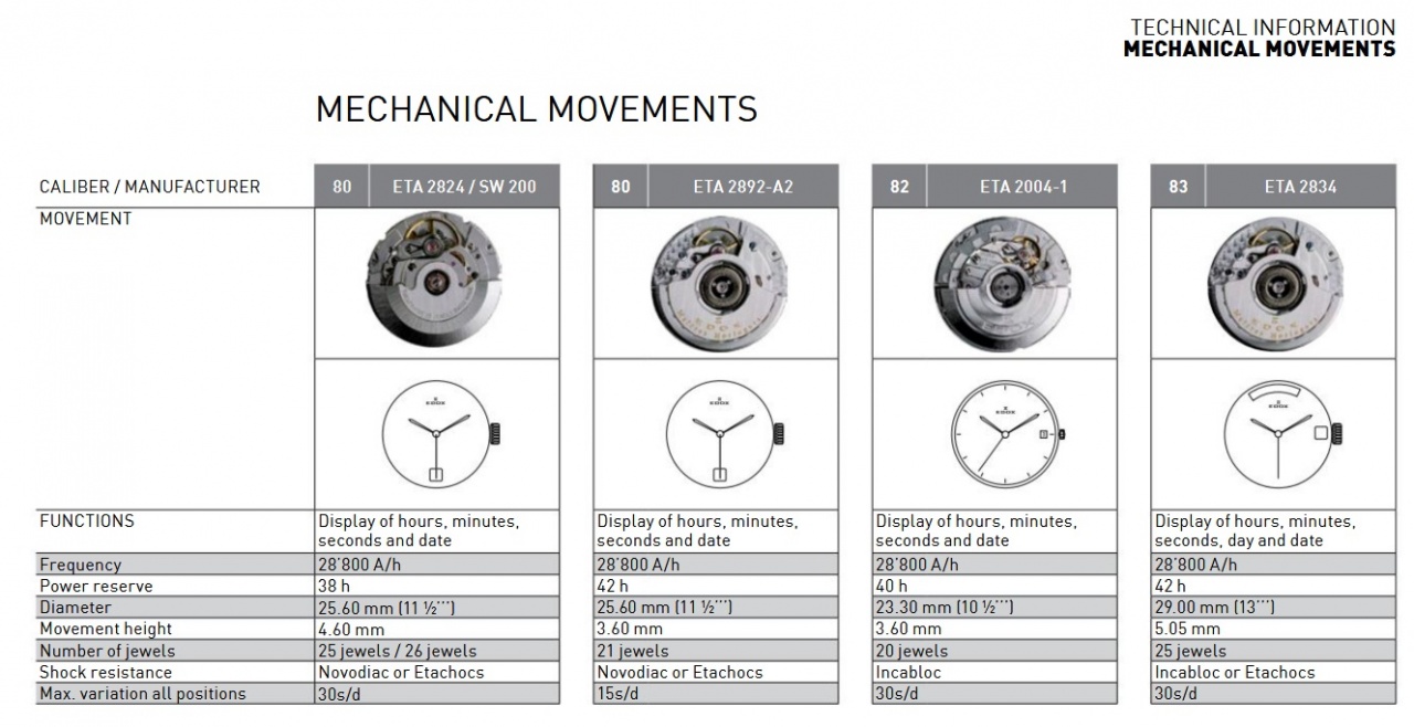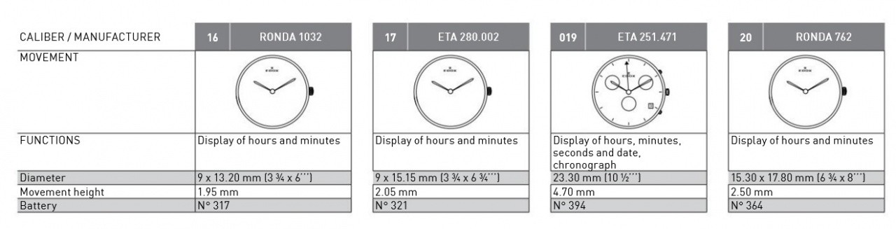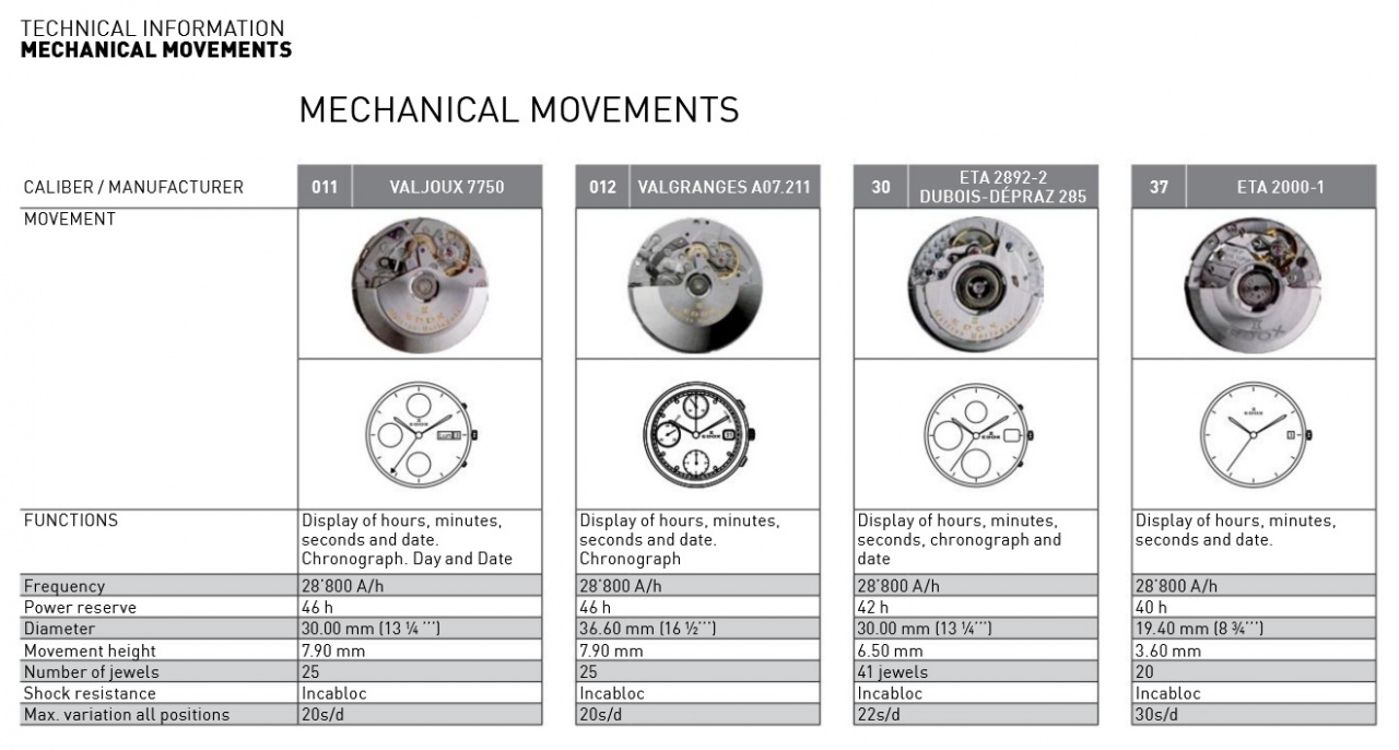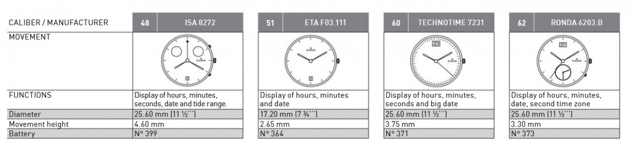 Калибры, используемые Edox
