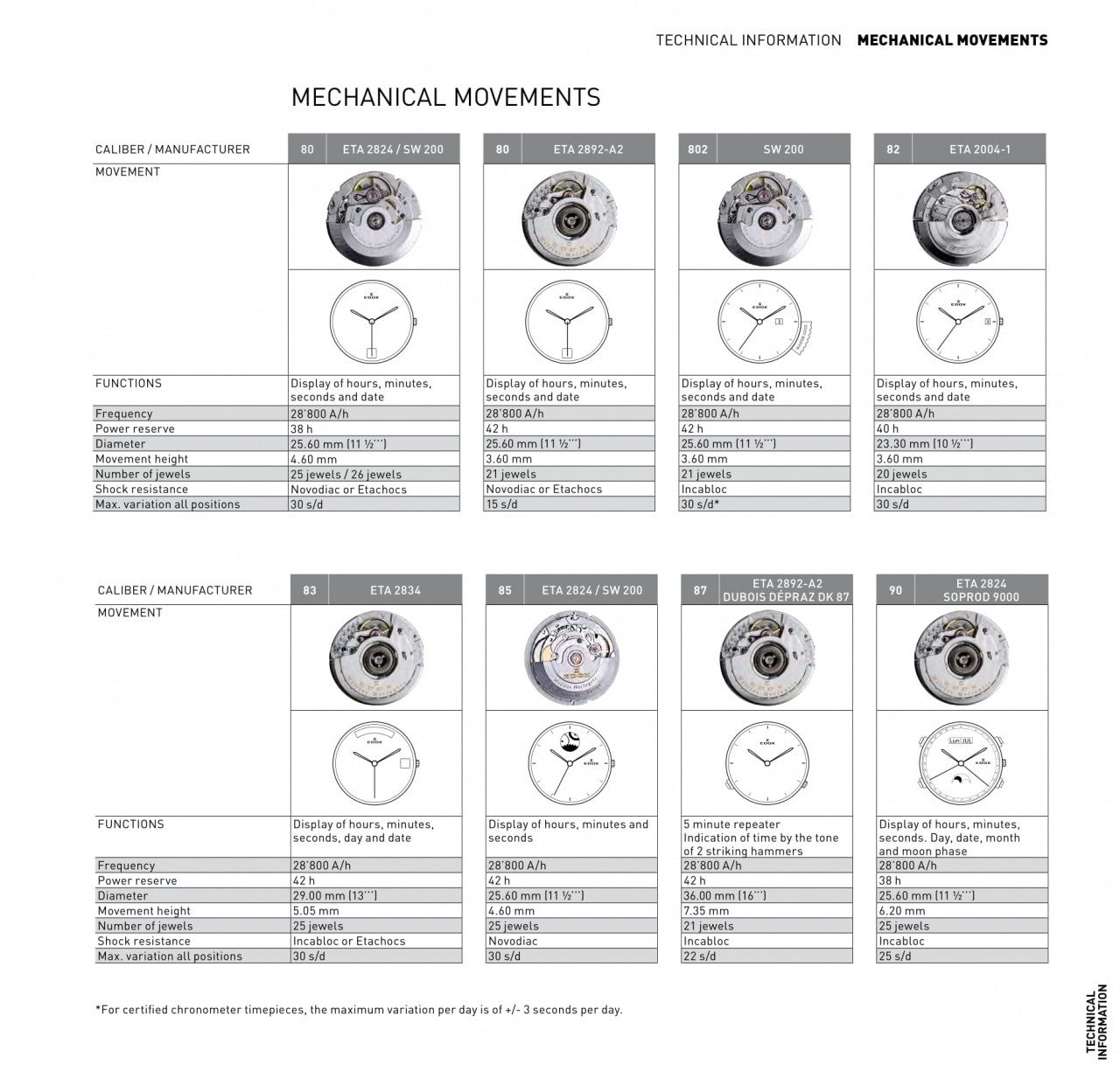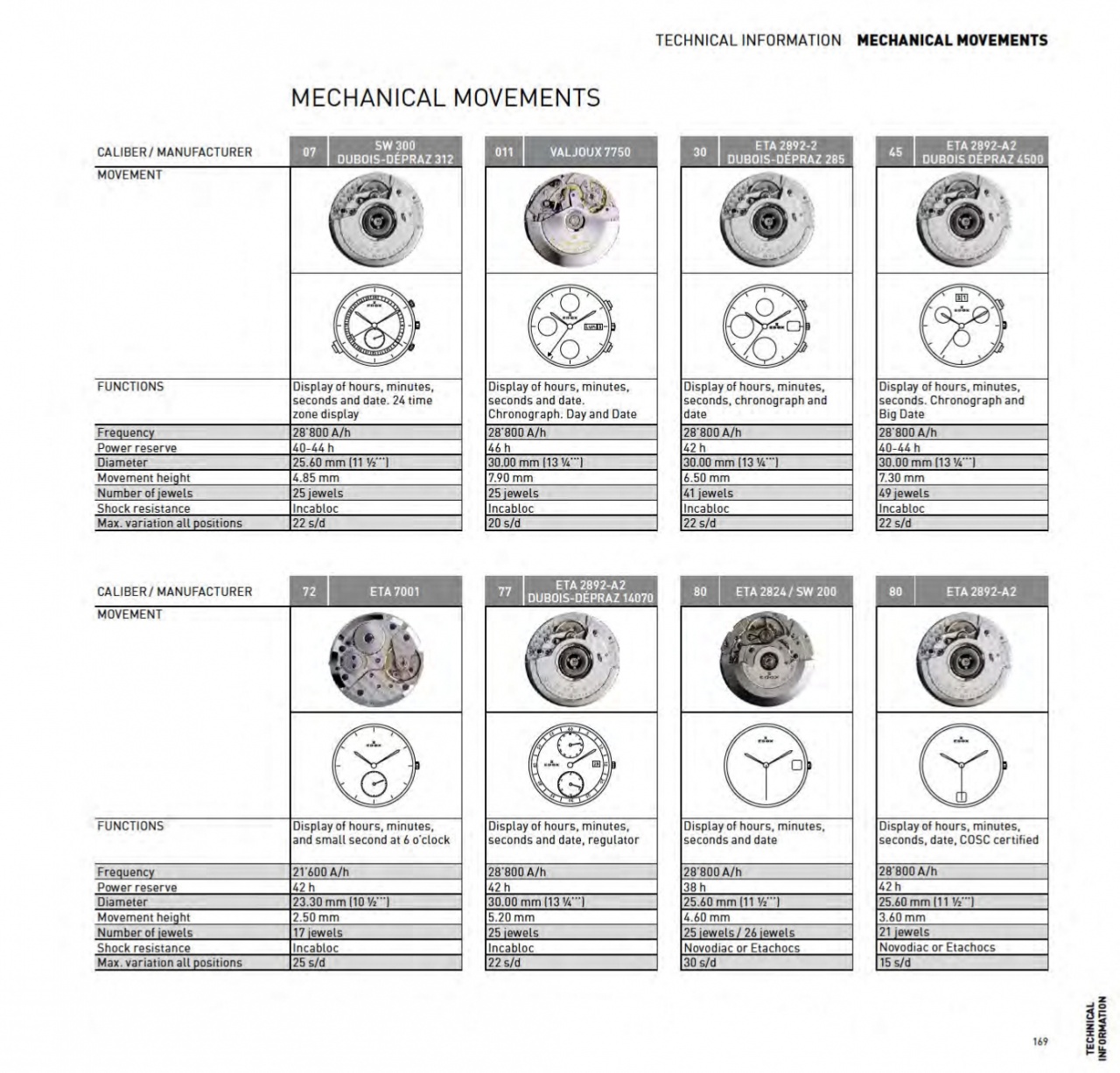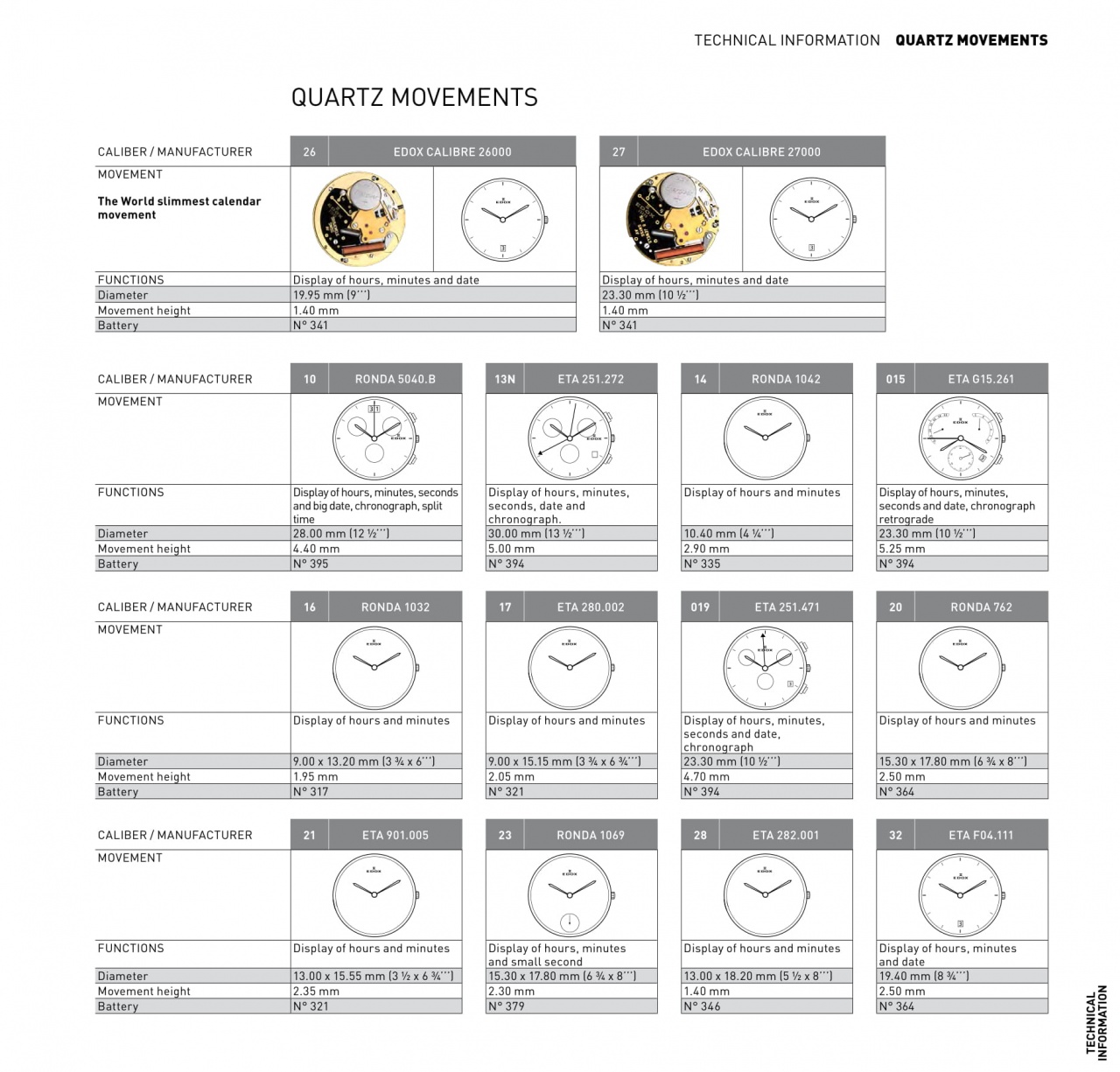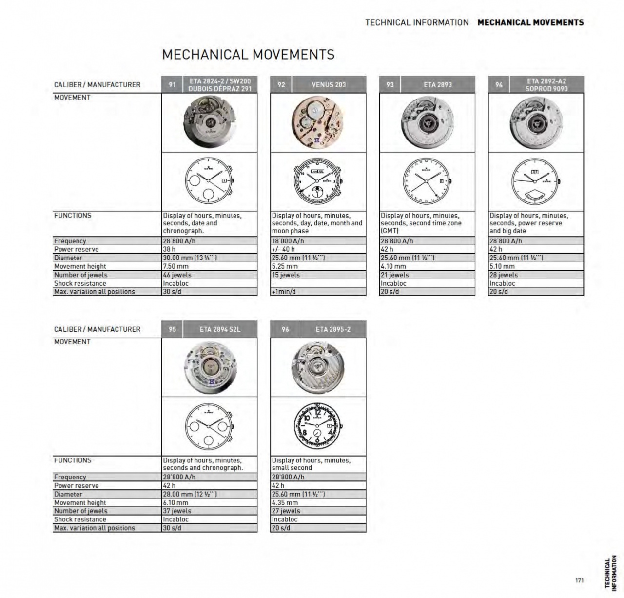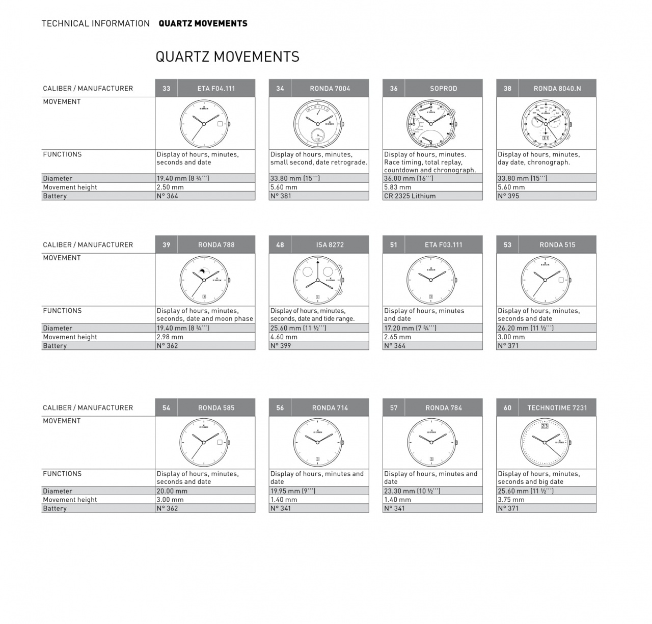 Калибры, используемые Edox