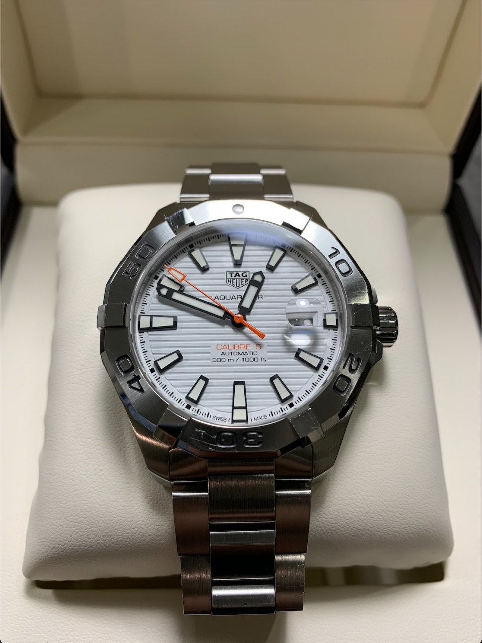 Продам Tag Heuer, Aquaracer Calibre 5,WAY2013.BA0927, 43 мм, отличные дайверы, с практичным механизмом с автоподзаводом и хорошим запасом хода, дата с лупой, белый цифер, отличный люм двух оттенков, часы были приобретены в Conquest на Маяковке в начале декабря по специальному предложению за 105 000 руб.(минимальная розница на них 128 000 руб.), одевались пару недель в идеальном состоянии, естественные мелкие паутинки на застежке браслета, полнейший комплект, гарантия, чеки, звенья браслета и все бирки, цена сказка!!!! Часы находятся в Краснодаре!!! Продаются по причине приобретения Rolex Submariner...